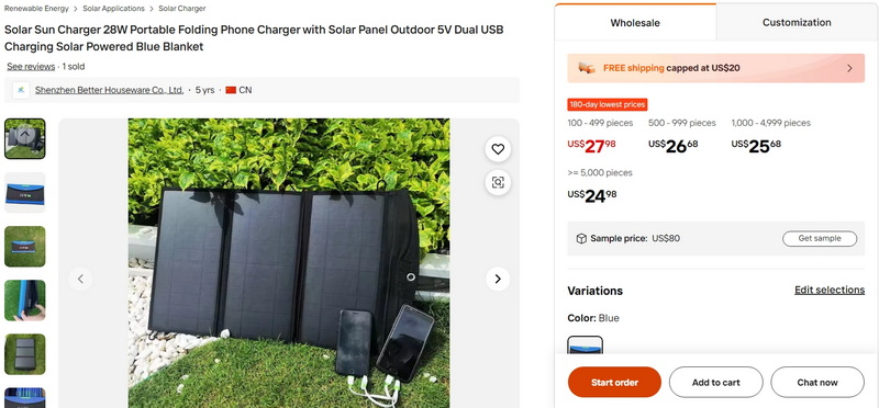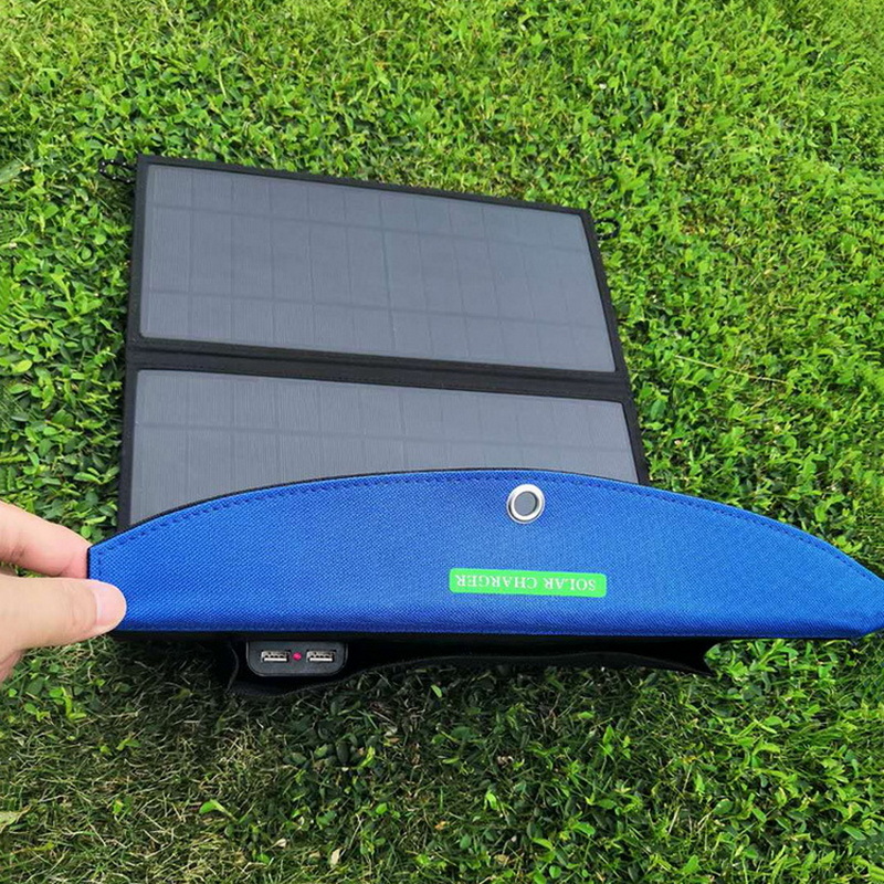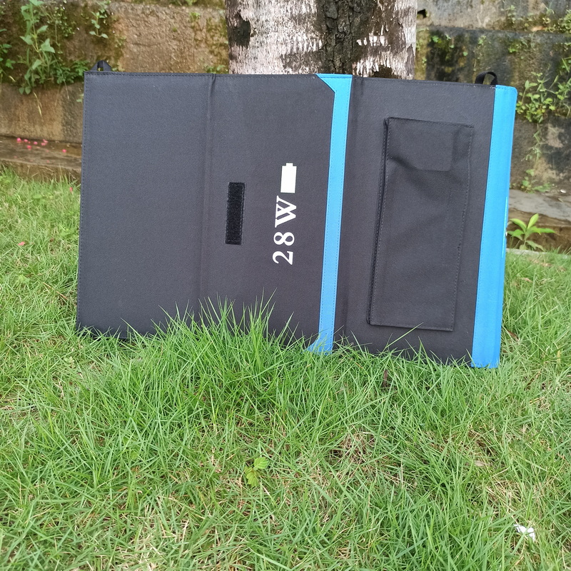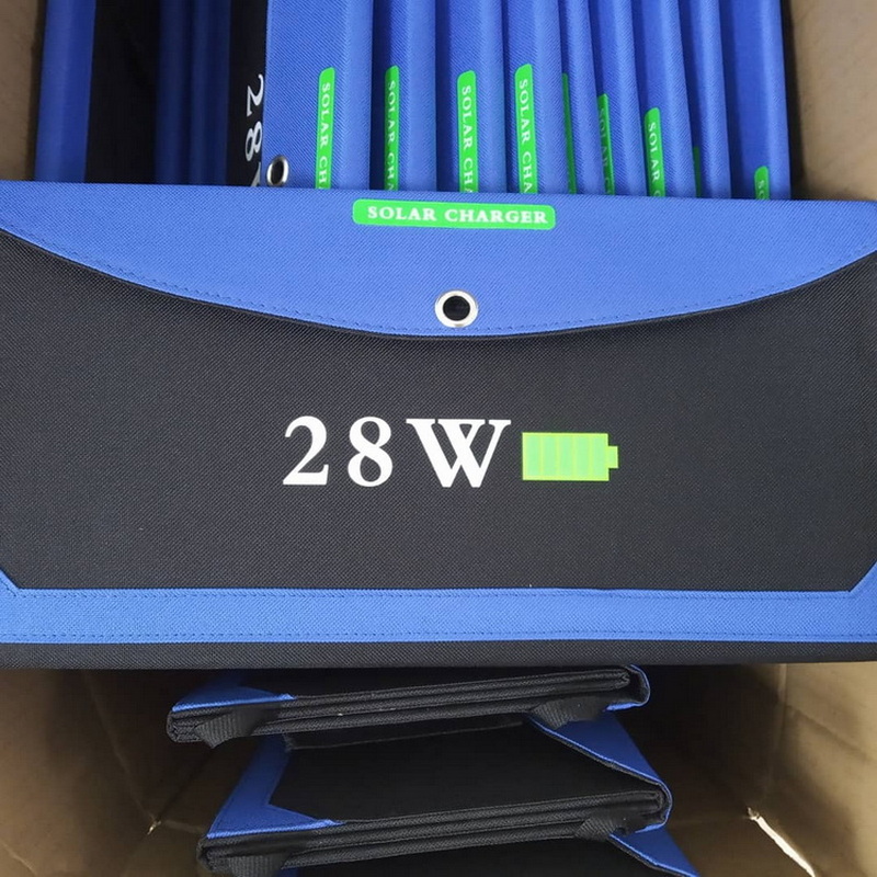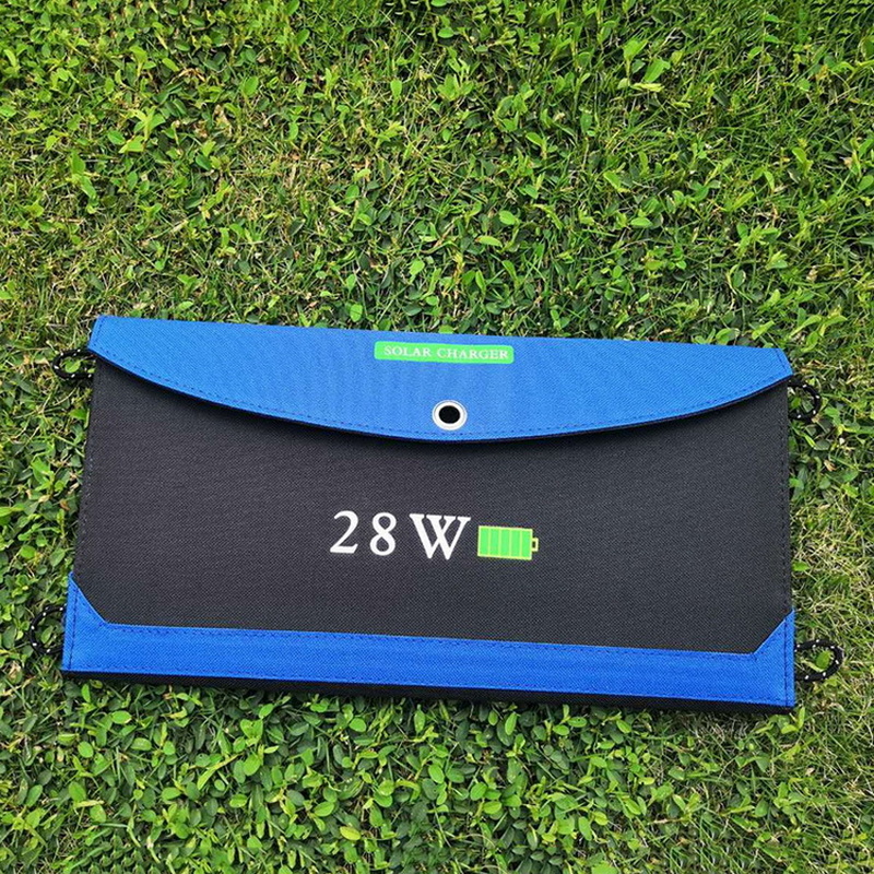 Solar Sun Charger 28W Portable Folding Phone Charger with Solar Panel Outdoor 5V Dual USB Charging Solar Powered Blue Blanket