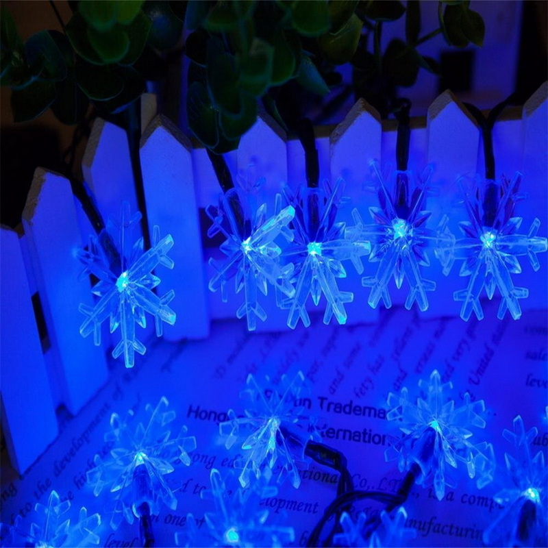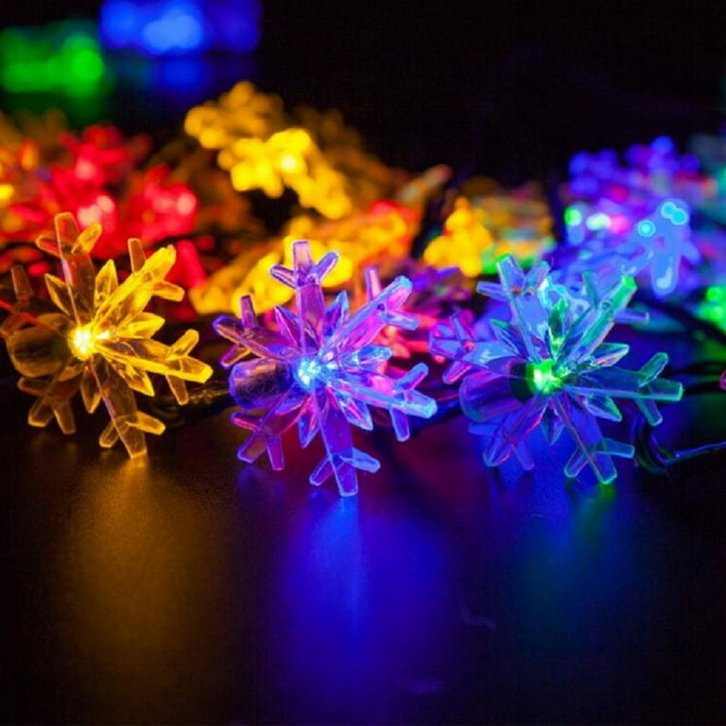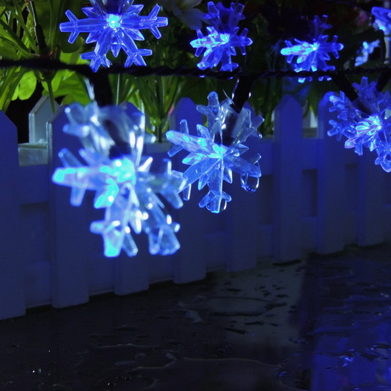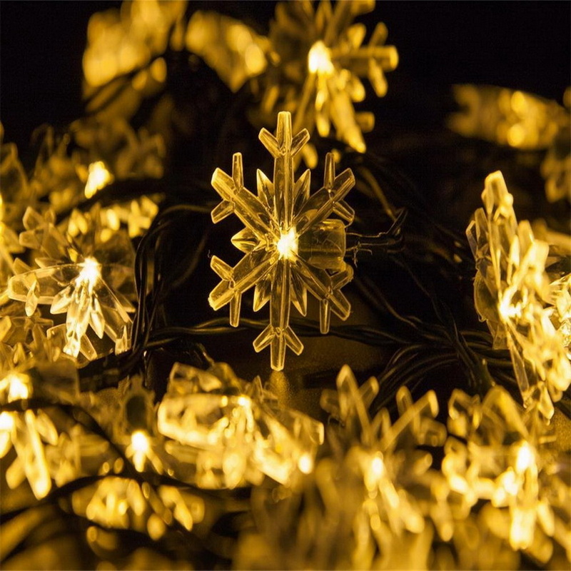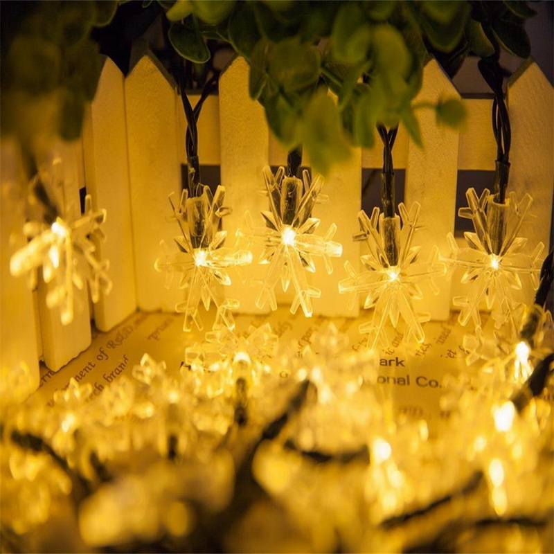 Holiday Led Sunlights 7M 50Led Snow Flakes Outdoor Christmas Lights Sun Led String Light Solar Warm White Lights Waterproof