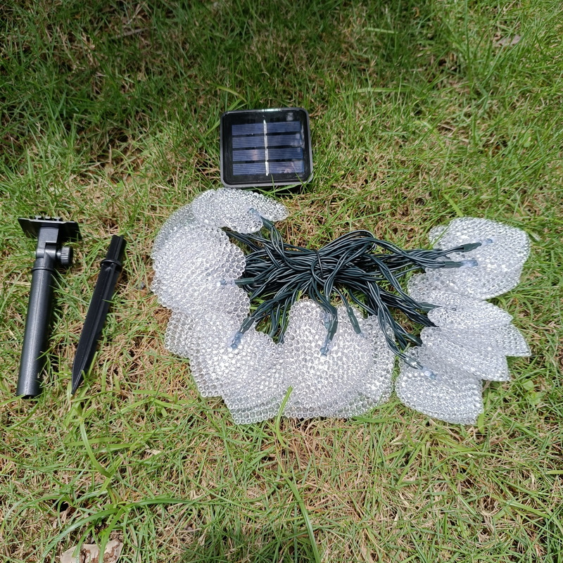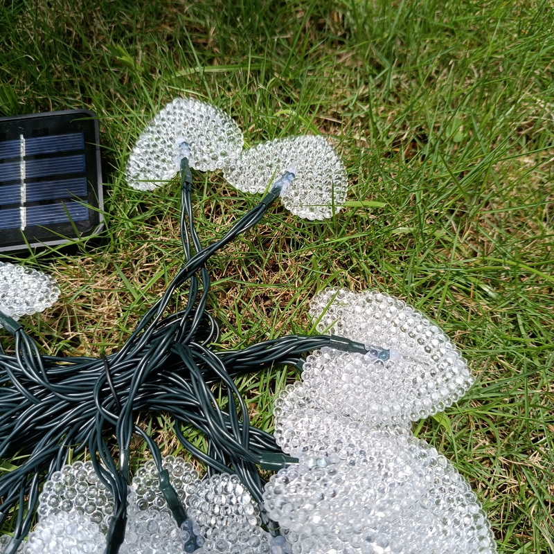 This solar LED string use the effective solar panel power, can convert solar energy into electricity and stored in the built-in battery, for LED lights use. Includes a lot of LED beads, it is a perfect decorative lights.