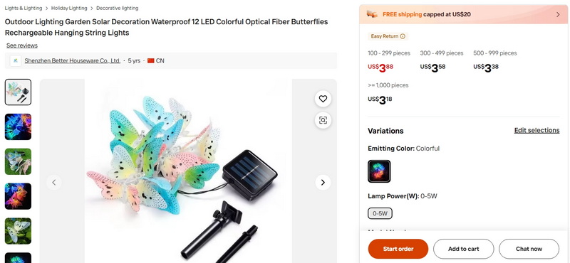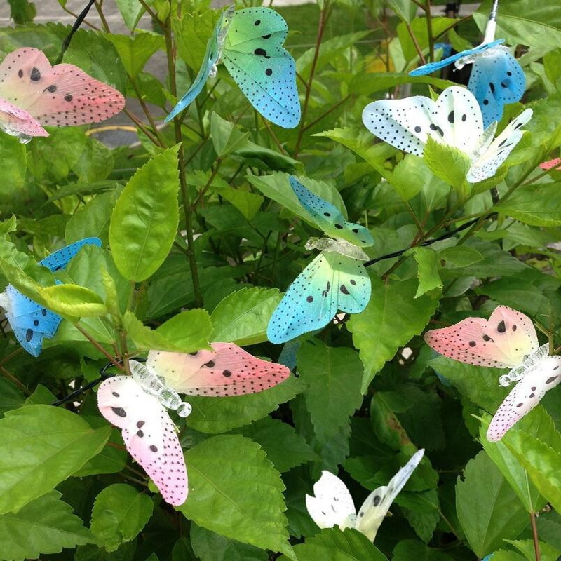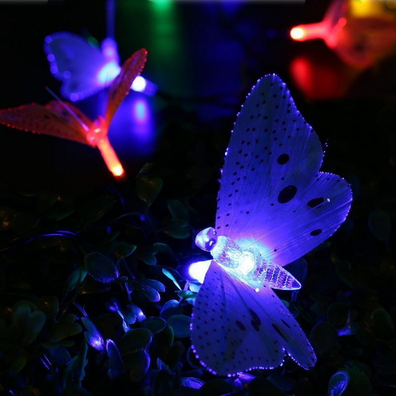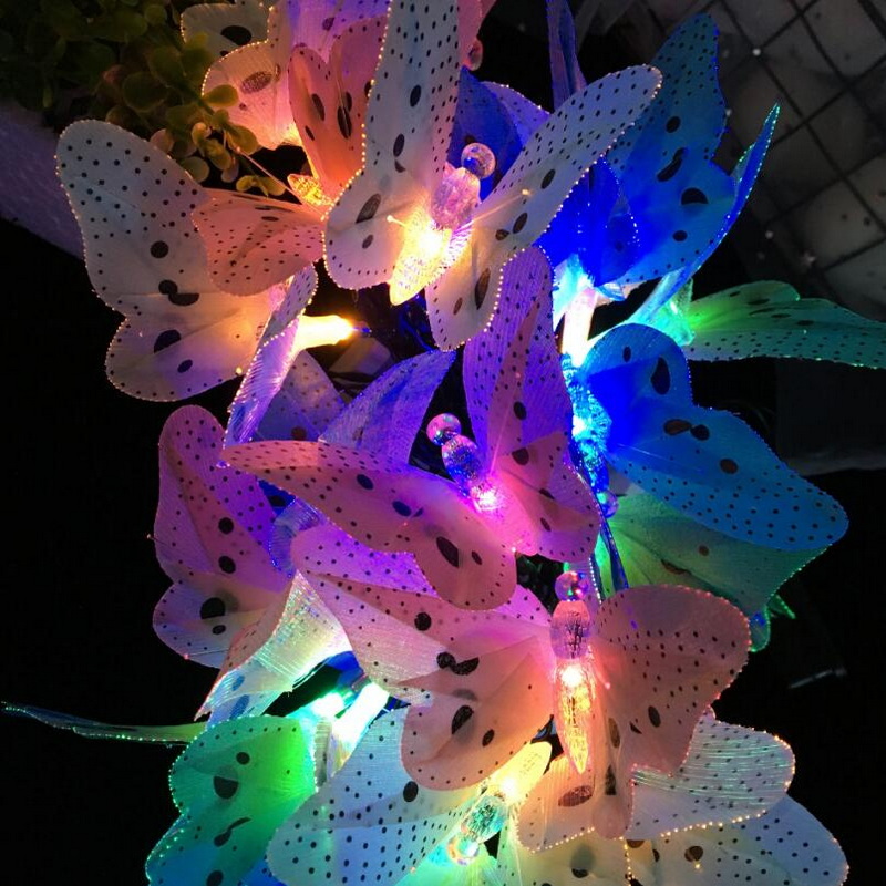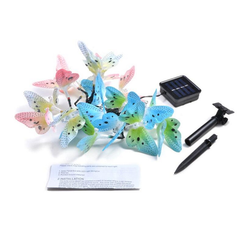 Outdoor Lighting Garden Solar Decoration Waterproof 12 LED Colorful Optical Fiber Butterflies Rechargeable Hanging String Lights