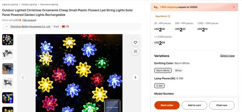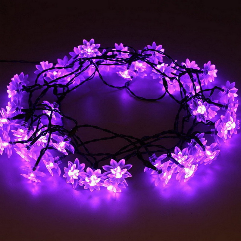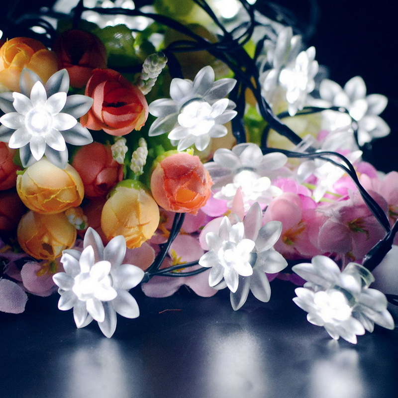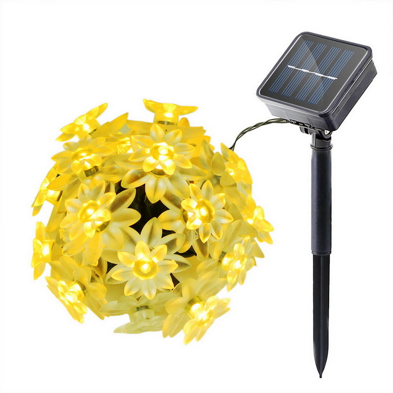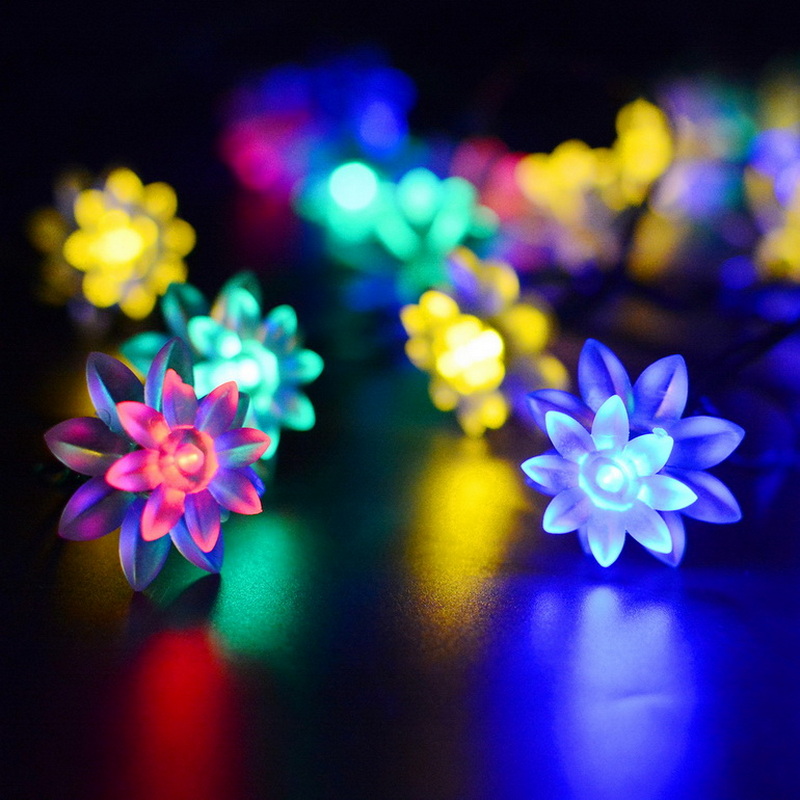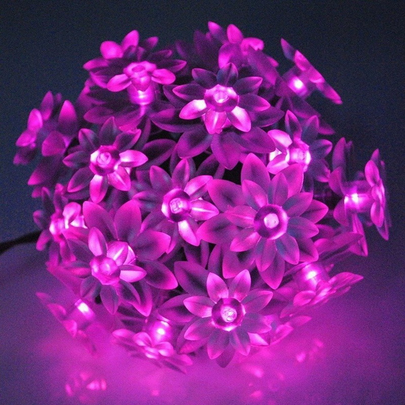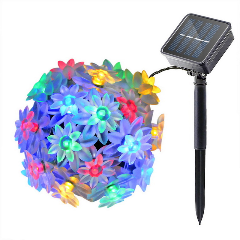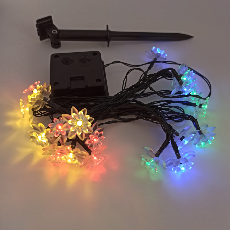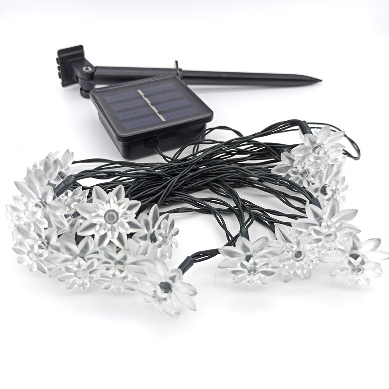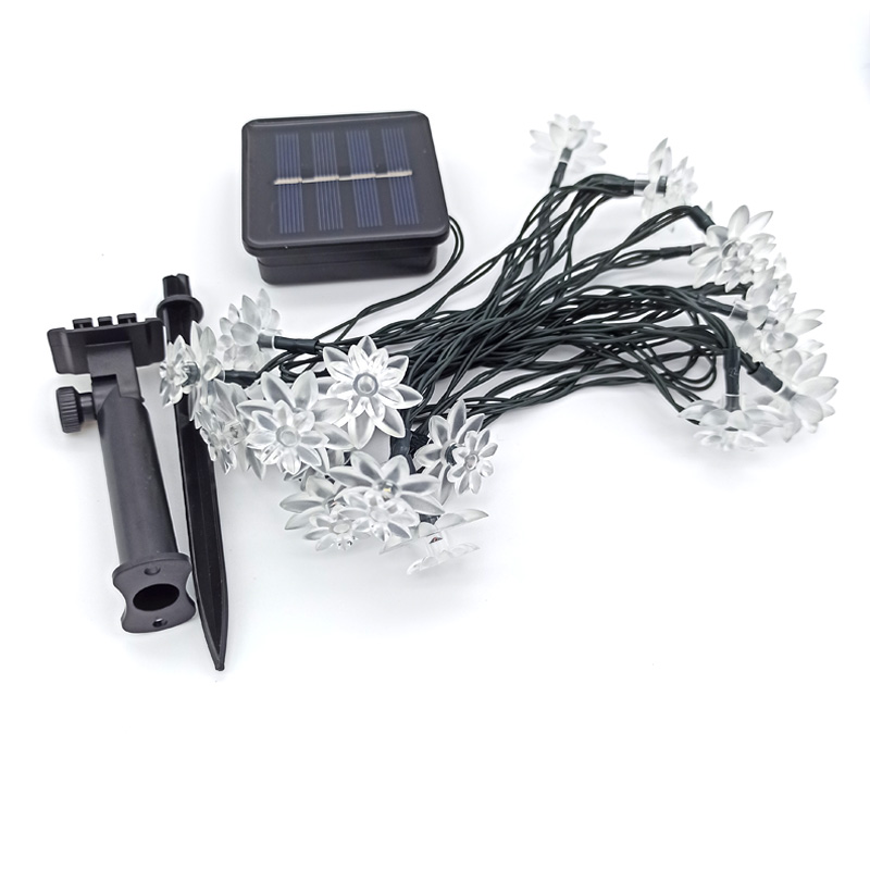 Outdoor Lighted Christmas Ornaments Cheap Small Plastic Flowers Led String Lights Solar Panel Powered Garden Lights Rechargeable