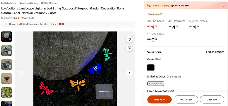 Low Voltage Landscape Lighting Led String Outdoor Waterproof Garden Decoration Solar Control Panel Powered Dragonfly Lights