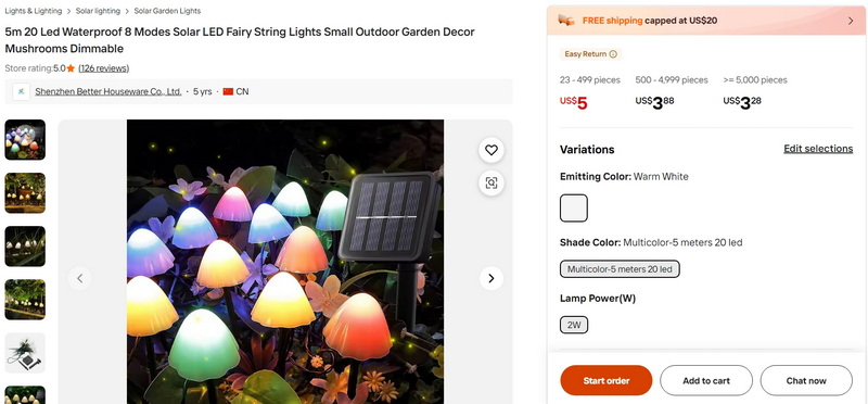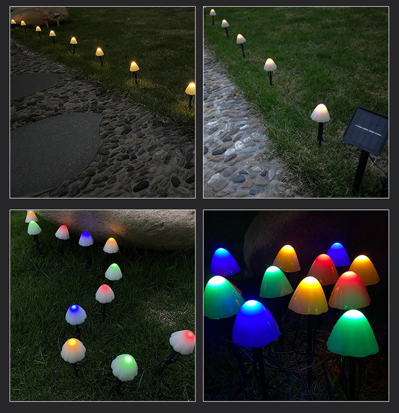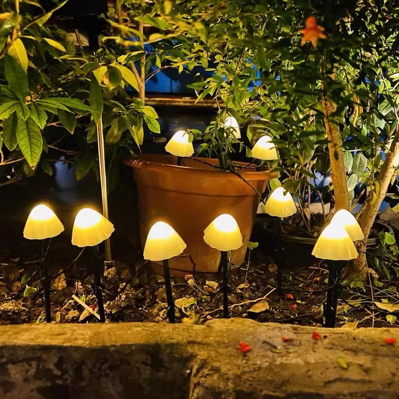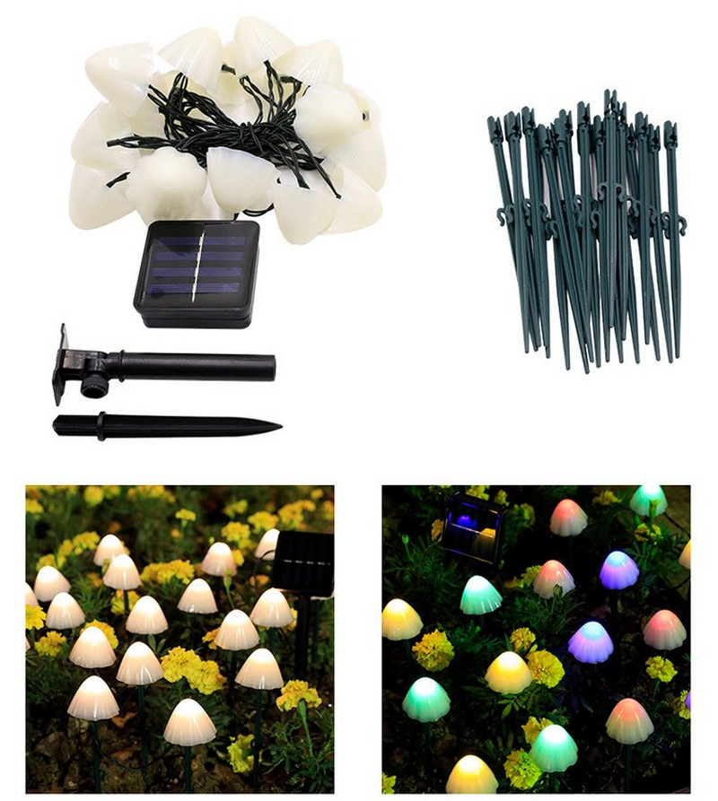 5m 20 Led Waterproof 8 Modes Solar LED Fairy String Lights Small Outdoor Garden Decor Mushrooms Dimmable
