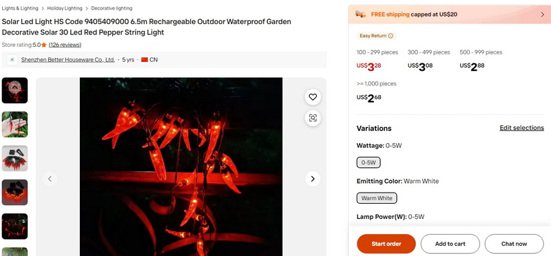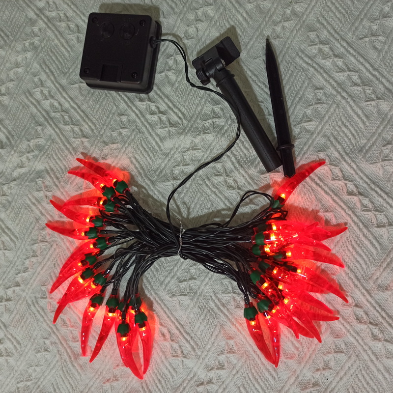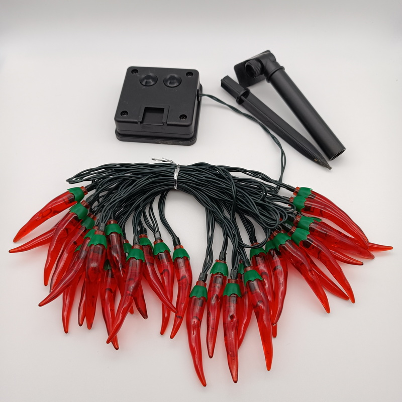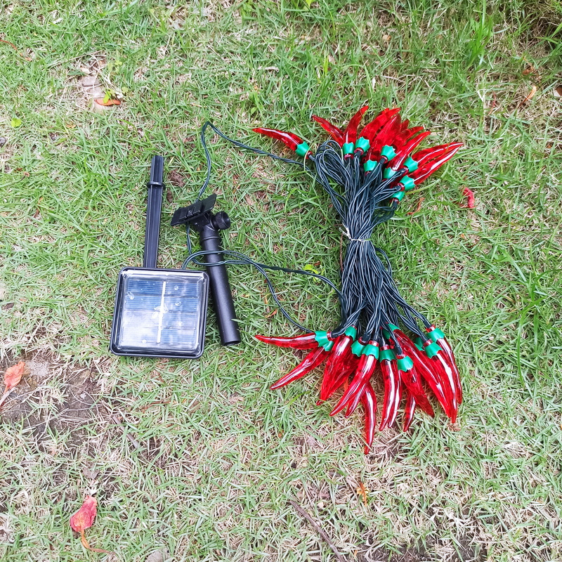 Solar Led Light HS Code 9405409000 6.5m Rechargeable Outdoor Waterproof Garden Decorative Solar 30 Led Red Pepper String Light