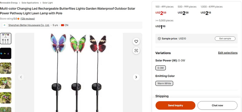 Multi-color Changing Led Rechargeable Butterflies Lights Garden Waterproof Outdoor Solar Power Pathway Light Lawn Lamp with Pole