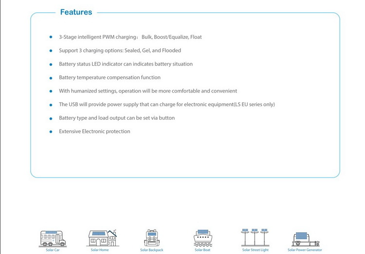 PWM Solar Charge Controller 5A-30A 12/24V Auto Selected Solar System