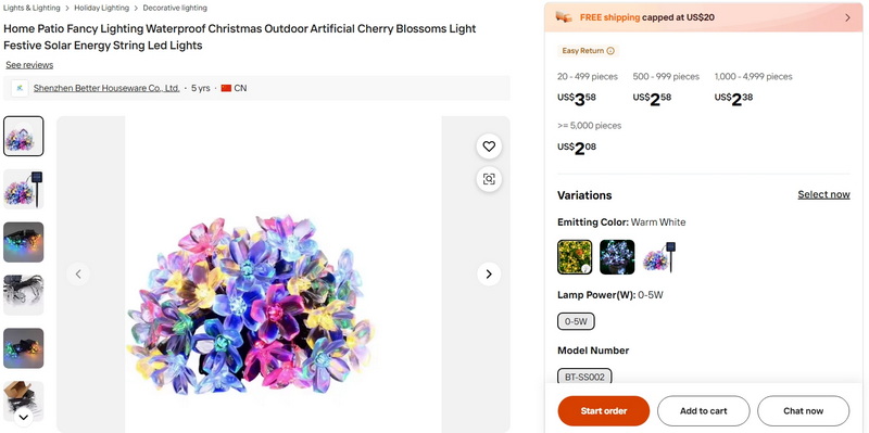 Home Patio Fancy Lighting Waterproof Christmas Outdoor Artificial Cherry Blossoms Light Festive Solar Energy String Led Lights
