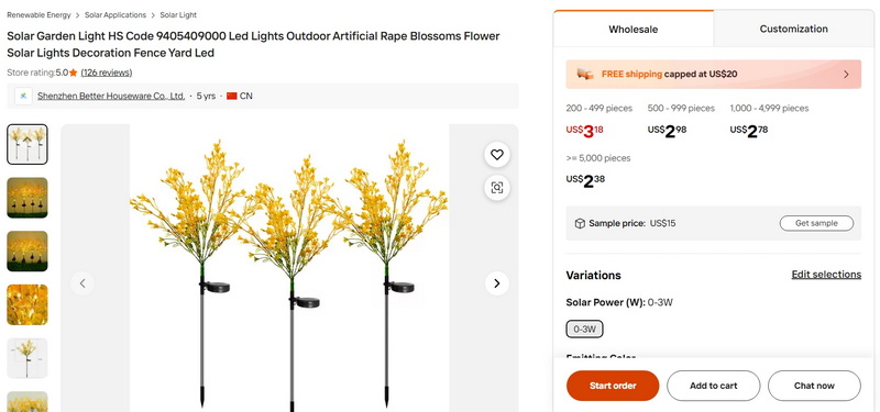 Solar Garden Light HS Code 9405409000 Led Lights Outdoor Artificial Rape Blossoms Flower Solar Lights Decoration Fence Yard Led