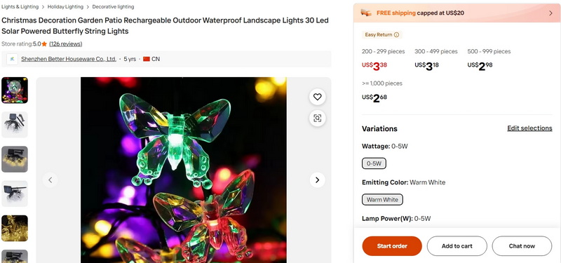 Christmas Decoration Garden Patio Rechargeable Outdoor Waterproof Landscape Lights 30 Led Solar Powered Butterfly String Lights