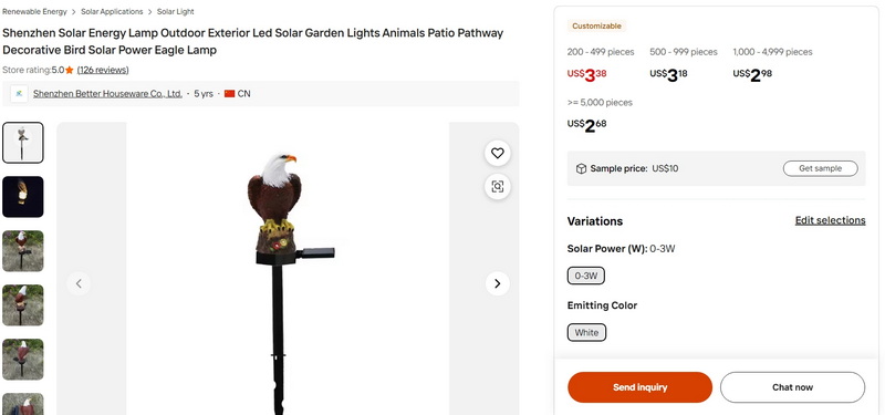 Shenzhen Solar Energy Lamp Outdoor Exterior Led Solar Garden Lights Animals Patio Pathway Decorative Bird Solar Power Eagle Lamp