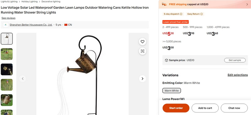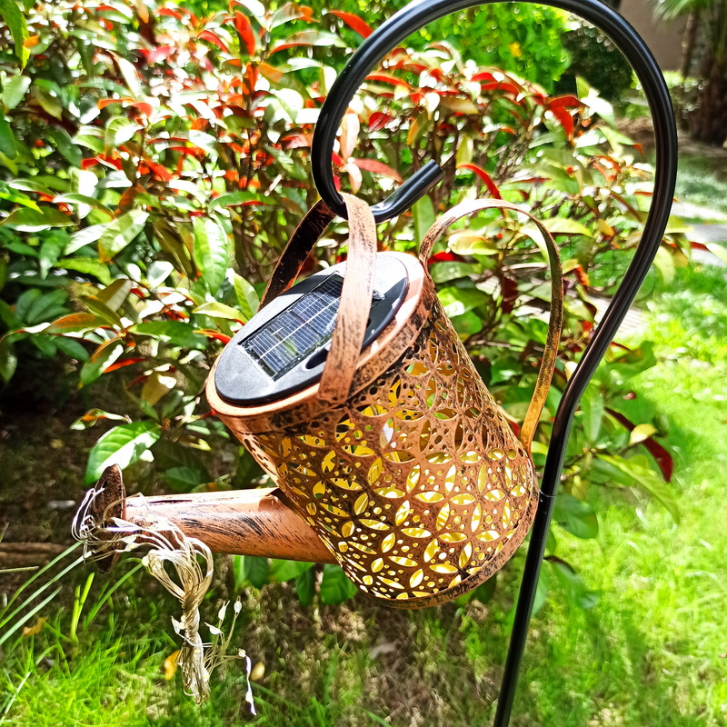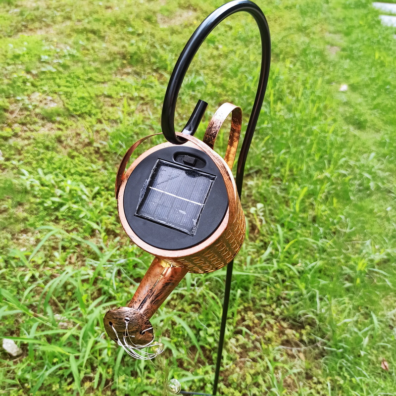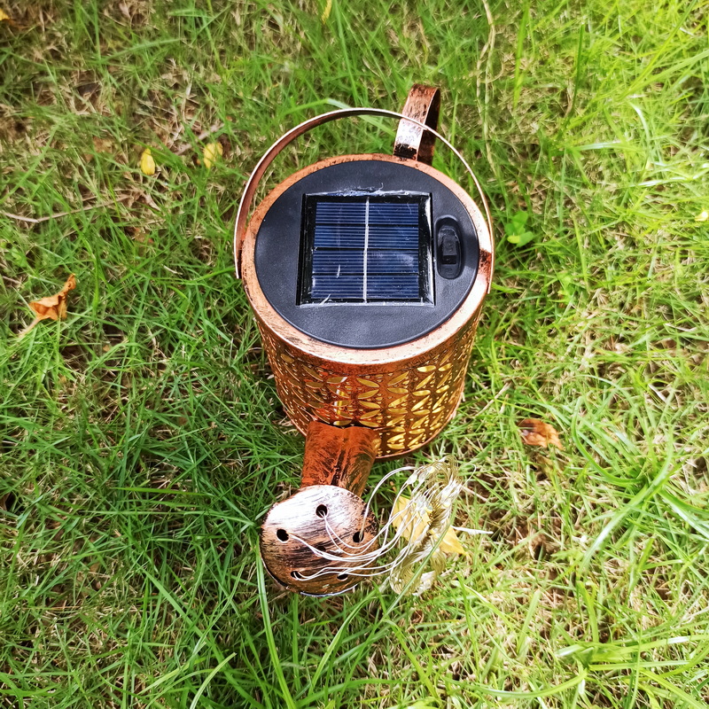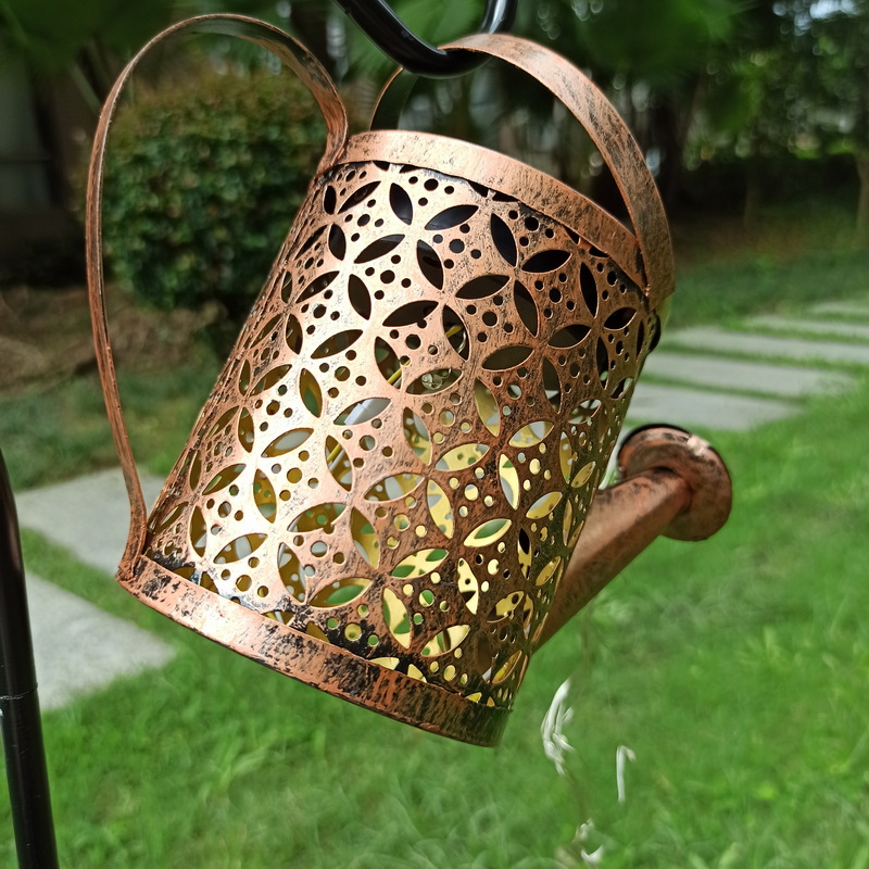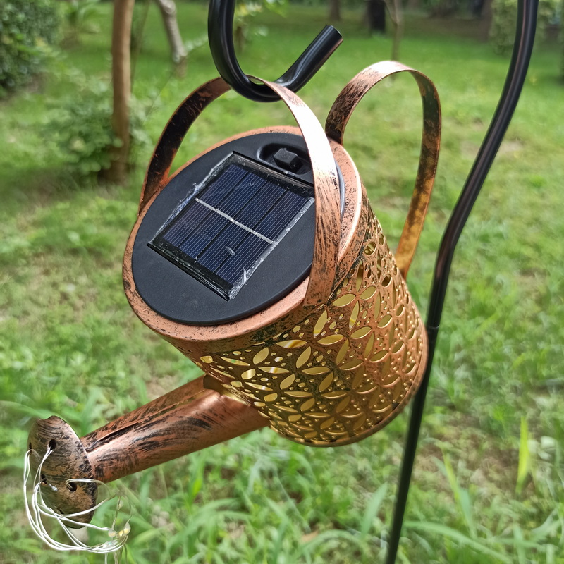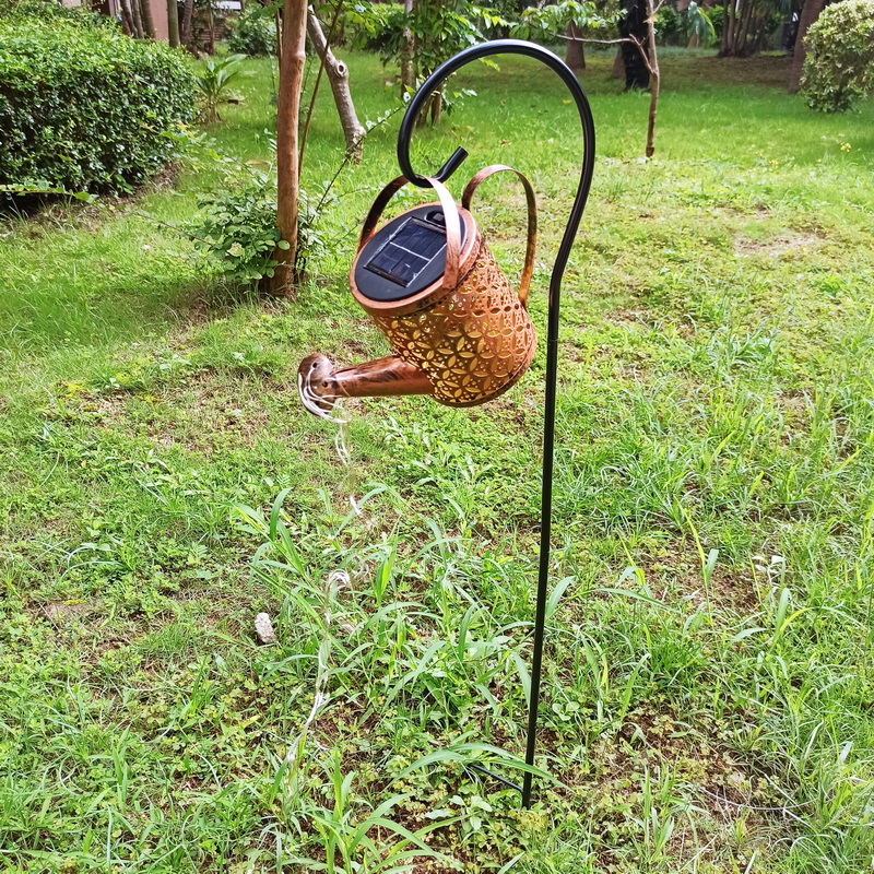 Low Voltage Solar Led Waterproof Garden Lawn Lamps Outdoor Watering Cans Kettle Hollow Iron Running Water Shower String Lights