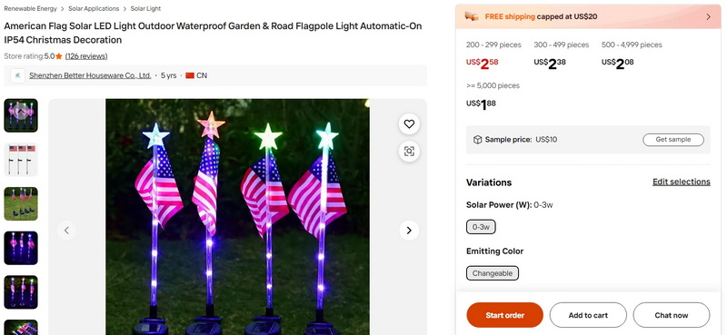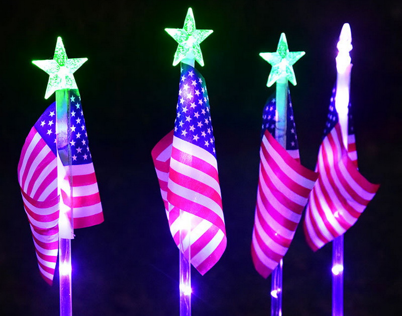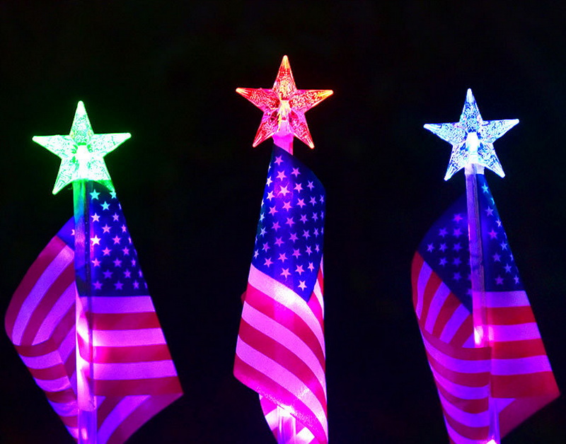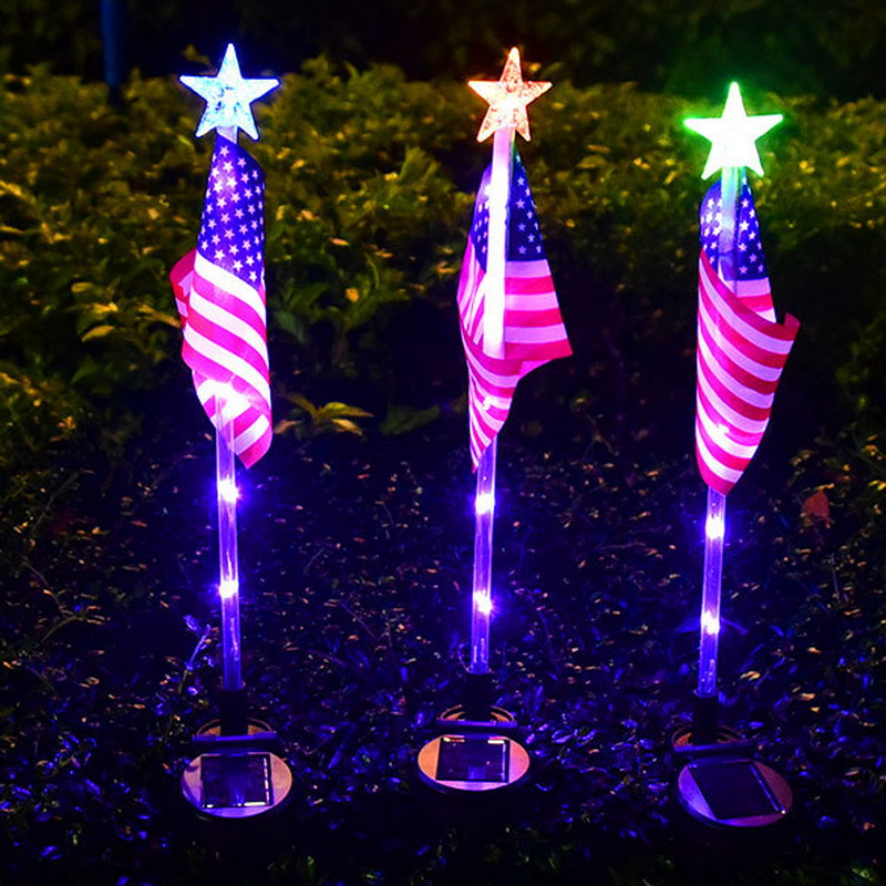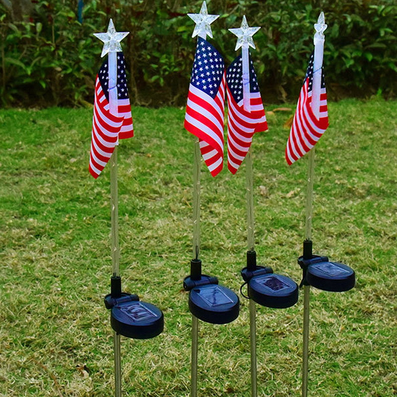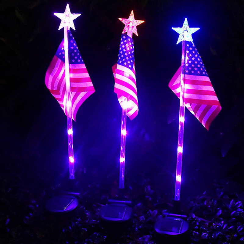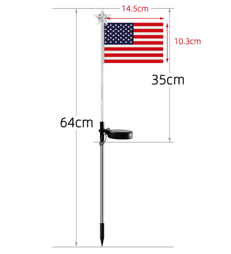 American Flag Solar LED Light Outdoor Waterproof Garden & Road Flagpole Light Automatic-On IP54 Christmas Decoration