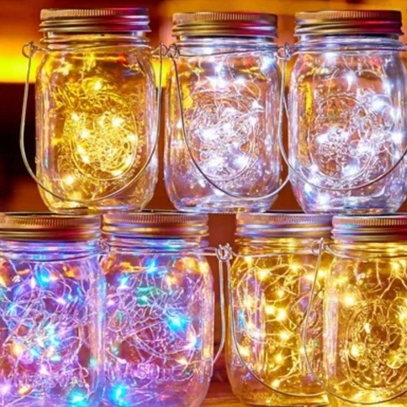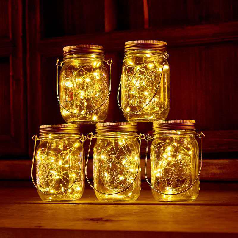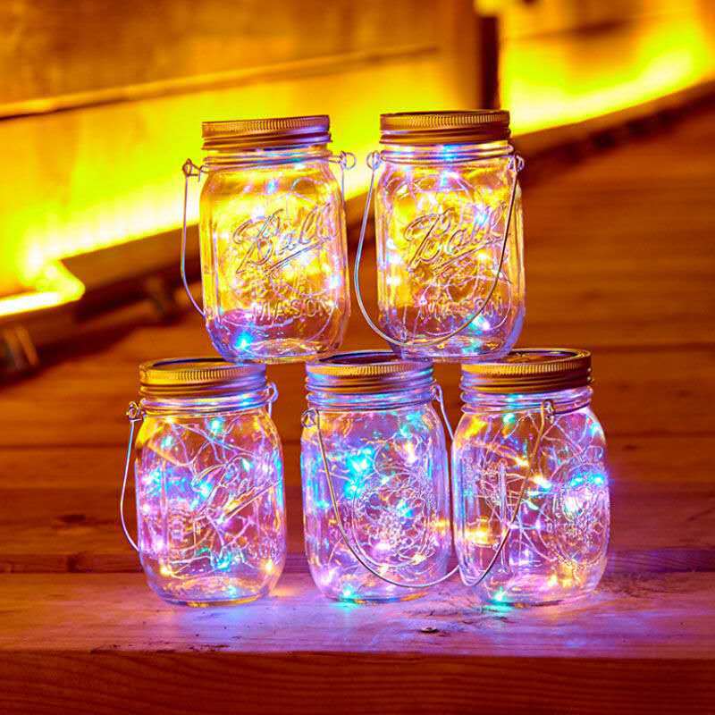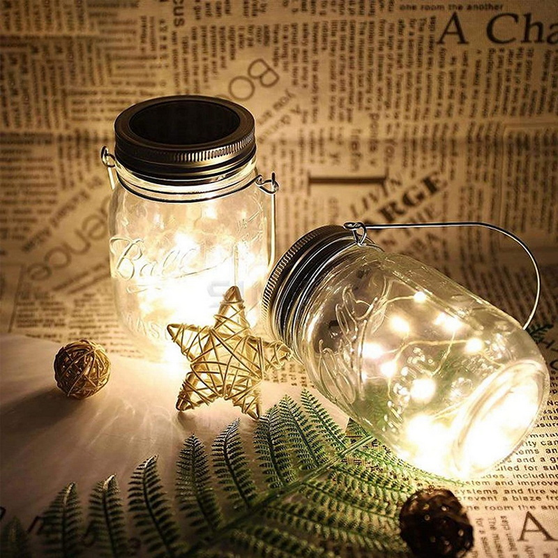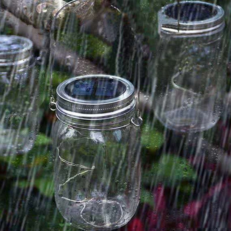 Solar Powered Hanging Bottle String Lights Outdoor Night Lighting Patio Garden Decoration 20 Led Glass Mason Jar Solar Light