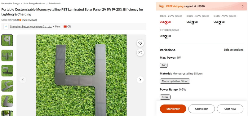 Portable Customizable Monocrystalline PET Laminated Solar Panel 2V 1W 19-20% Efficiency for Lighting & Charging