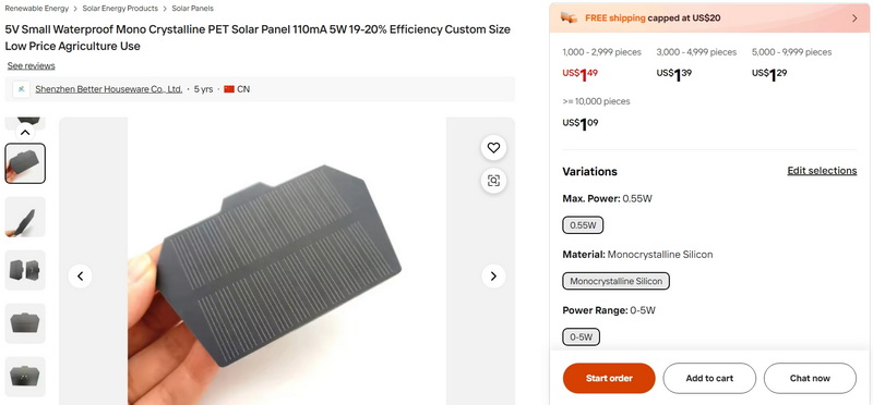 5V Small Waterproof Mono Crystalline PET Solar Panel 110mA 19-20% Efficiency Custom Size Low Price Agriculture Use