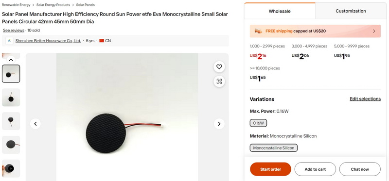 Solar Panel Manufacturer High Efficiency Round Sun Power etfe Eva Monocrystalline Small Solar Panels Circular 42mm 45mm 50mm Dia
