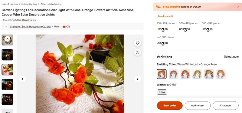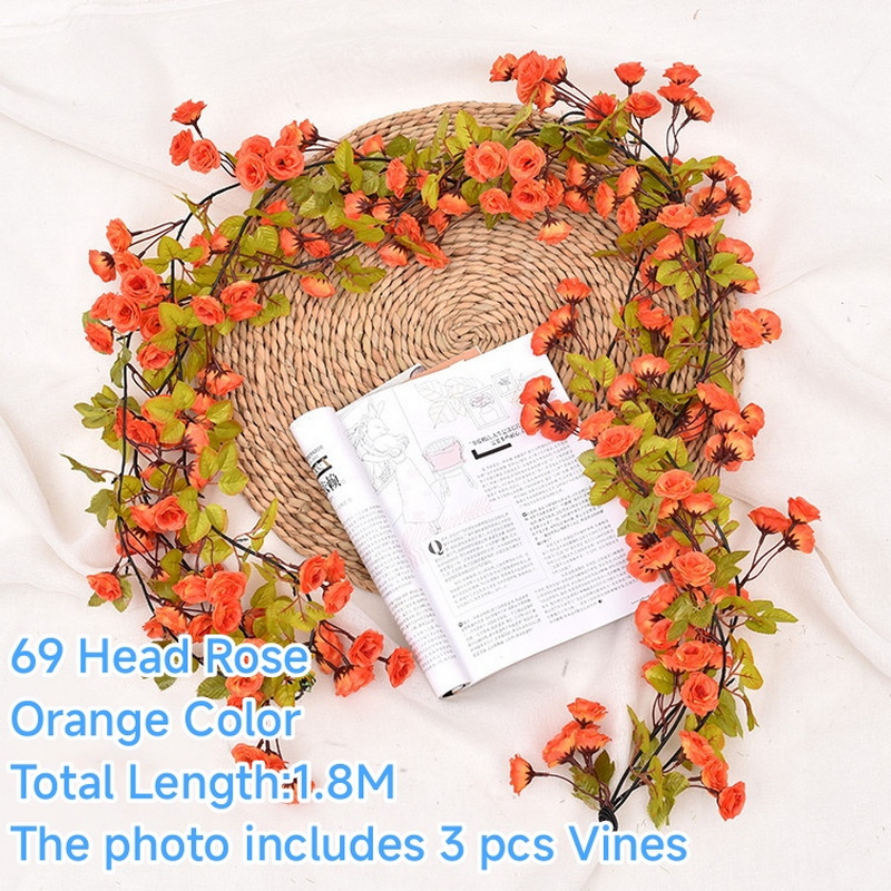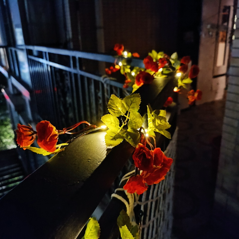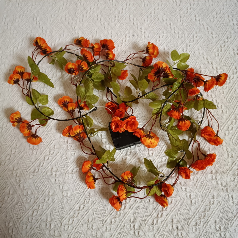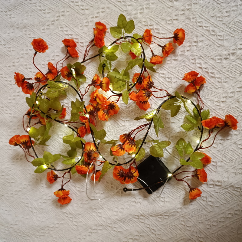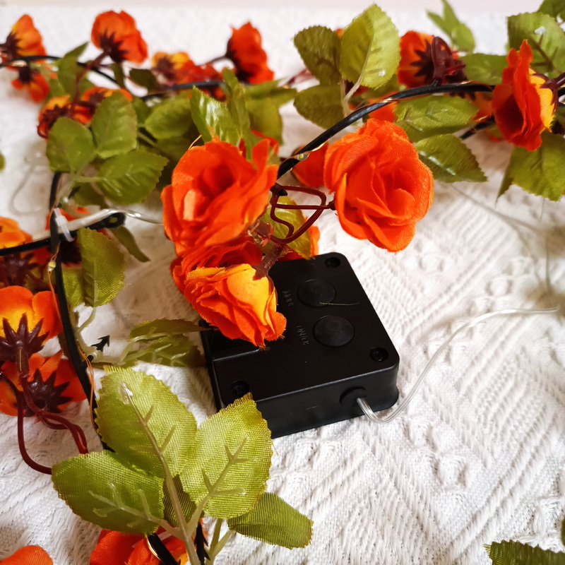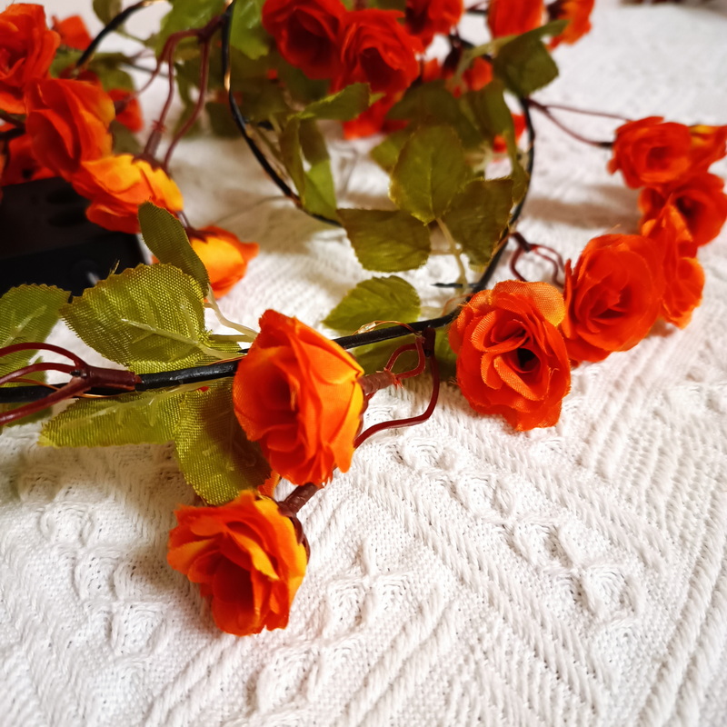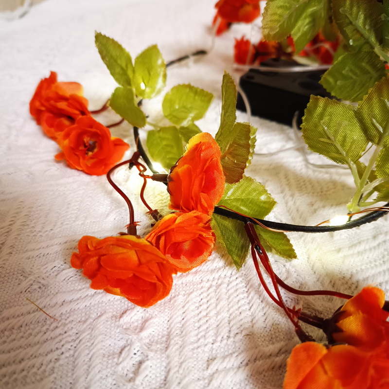 Garden Lighting Led Decoration Solar Light With Panel Orange Flowers Artificial Rose Vine Copper Wire Solar Decorative Lights