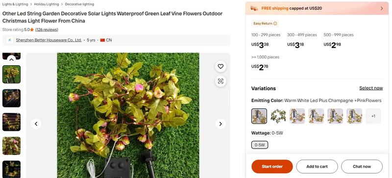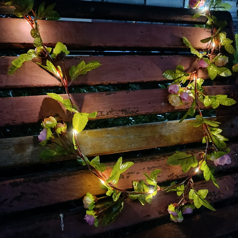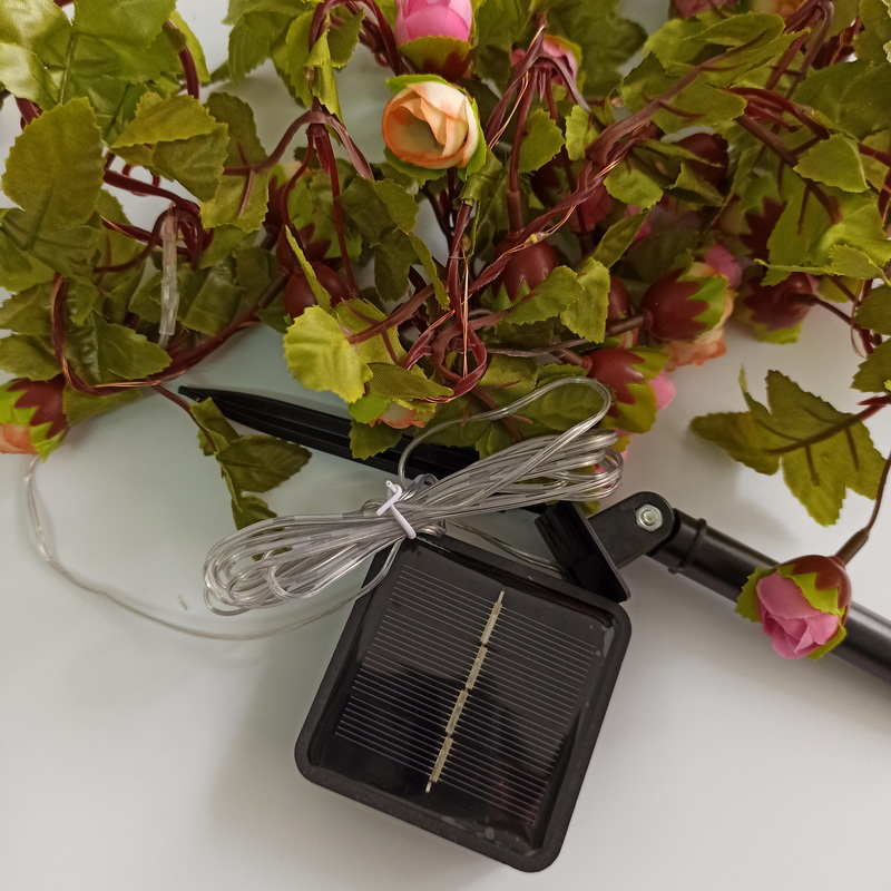Other Led String Garden Decorative Solar Lights Waterproof Green Leaf Vine Flowers Outdoor Christmas Light Flower From China