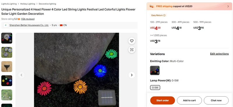 Unique Personalized 4 Head Flower 4 Color Led String Lights Festival Led Colorful Lights Flower Solar Light Garden Decoration