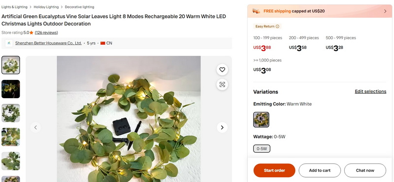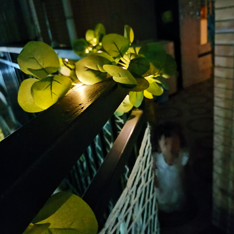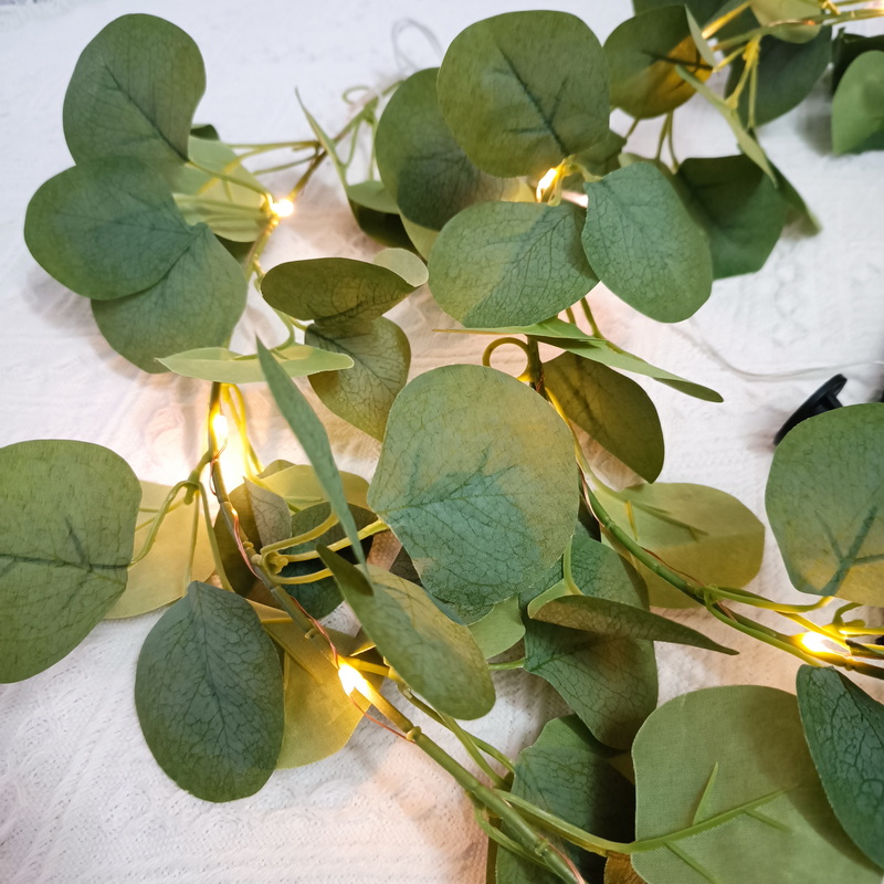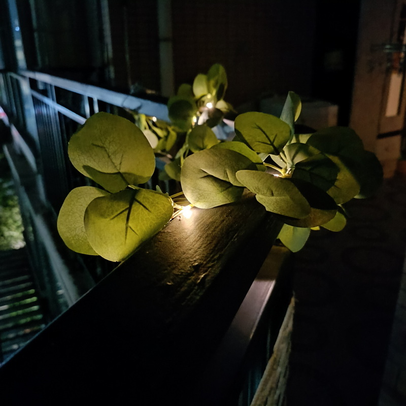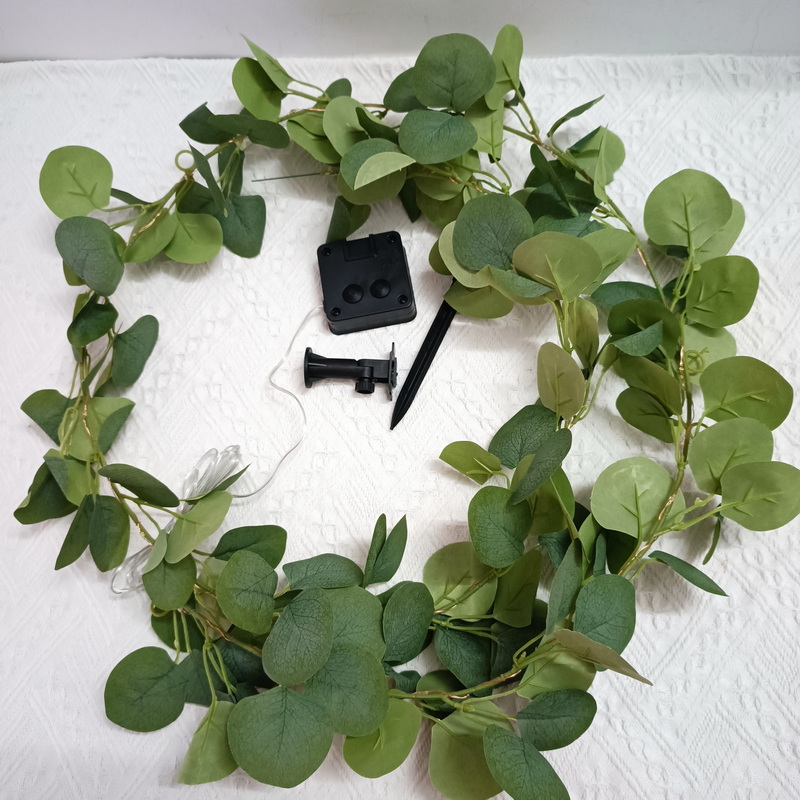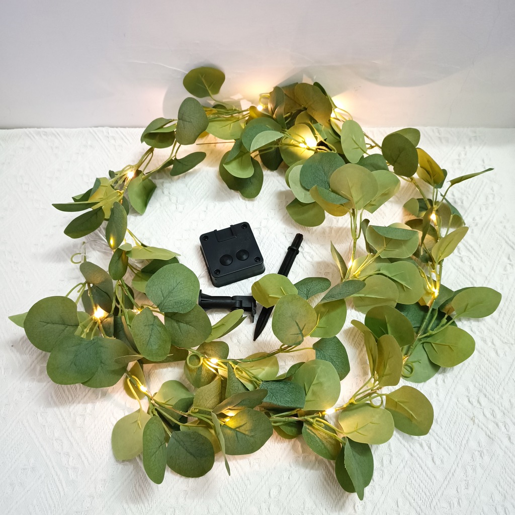 Artificial Green Eucalyptus Vine Solar Leaves Light 8 Modes Rechargeable 20 Warm White LED Christmas Lights Outdoor Decoration