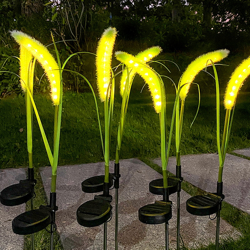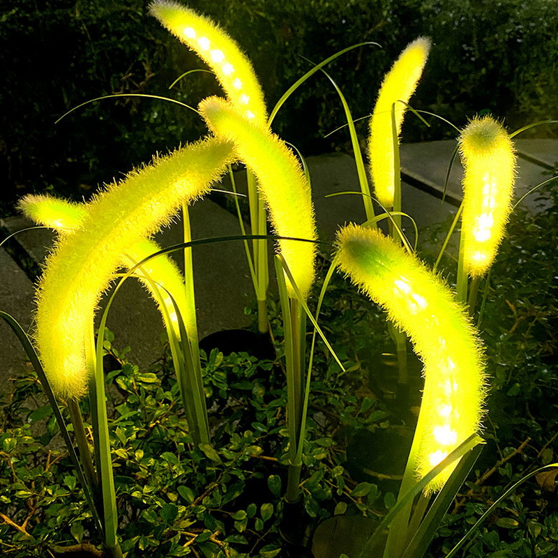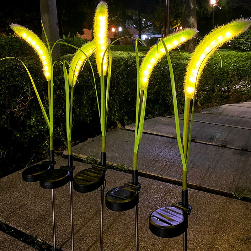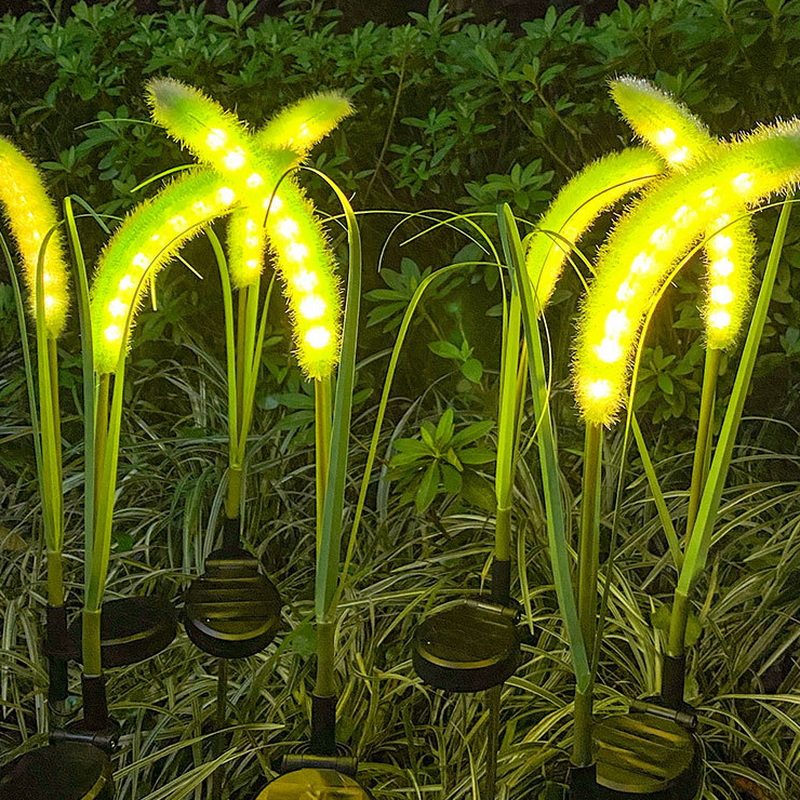 2024 Green Energy Lighting House Outdoor Decorations Steel Garden Led Reeds Light for Courtyard Soler Power Rechargeable Light