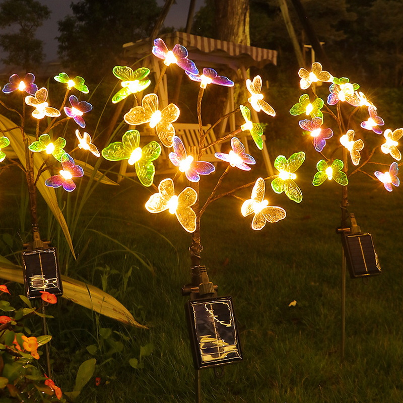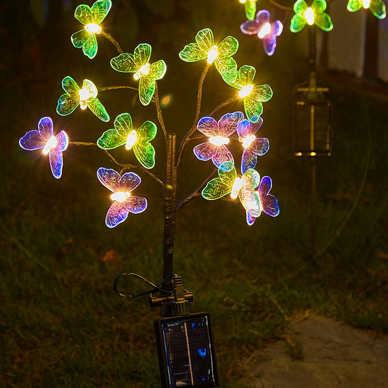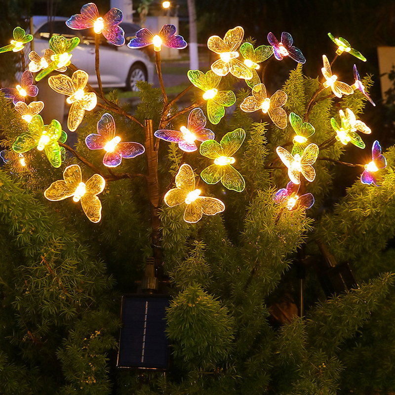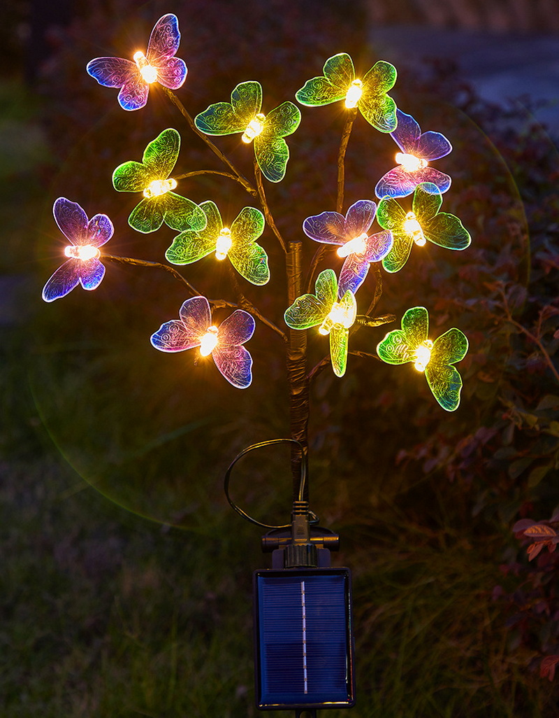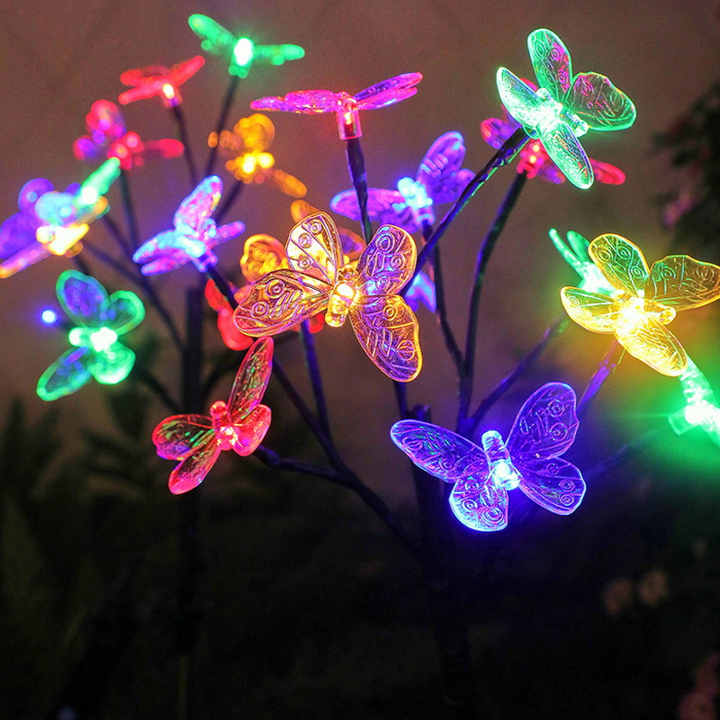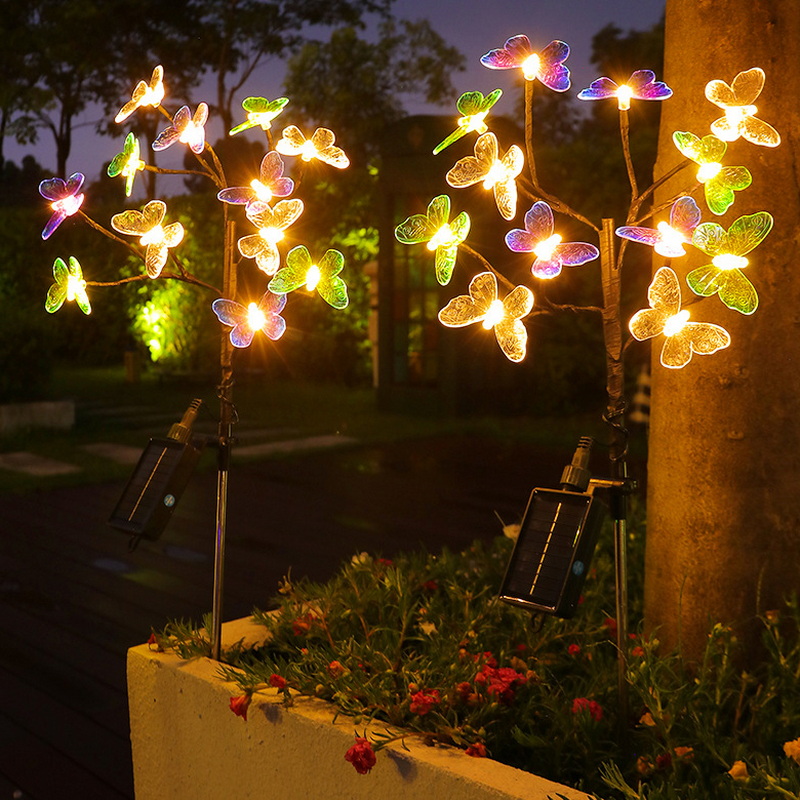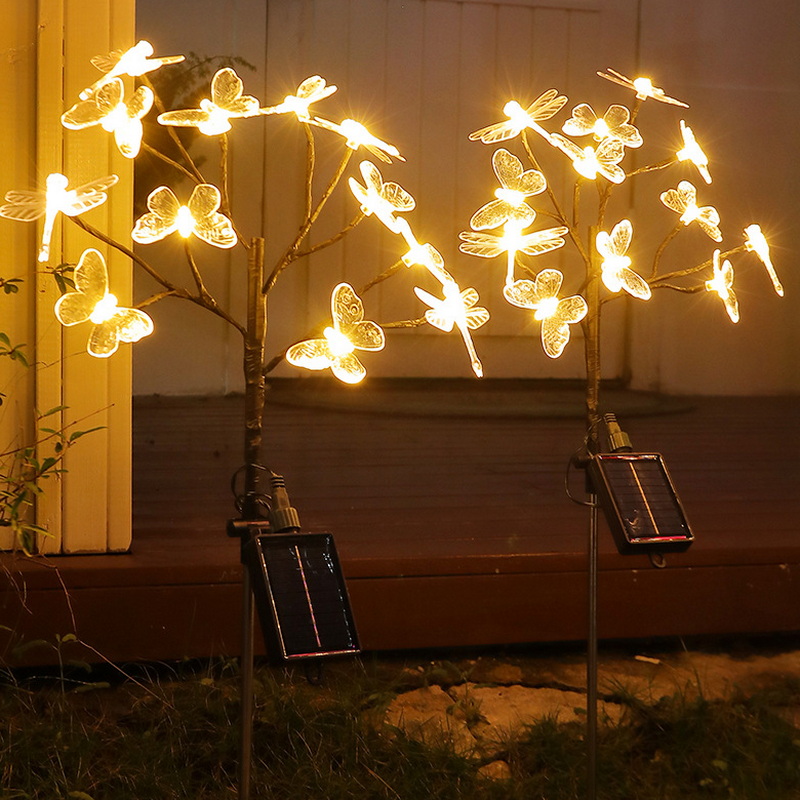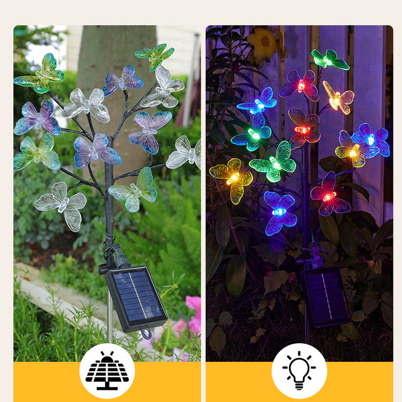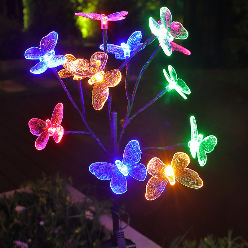 2024 Solar Light Outdoor Lamps Waterproof Landscape Lawn Solar Powered Garden Stake Lights with 12 Led Butterflies Dragonflies