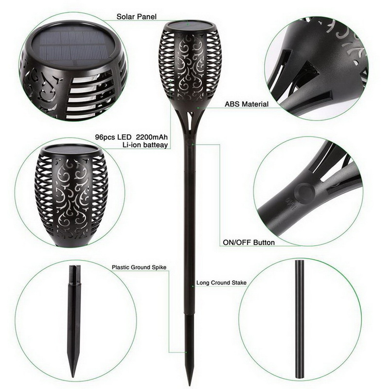 Garden Lamp 96Led IP65 Waterproof Solar Light Dancing Flickering Flames Rechargeable Led Solar Torch Lights Landscape Decoration