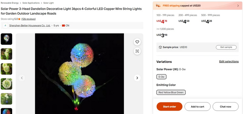 Solar Power 3-Head Dandelion Decorative Light 36pcs 4-Colorful LED Copper Wire String Lights