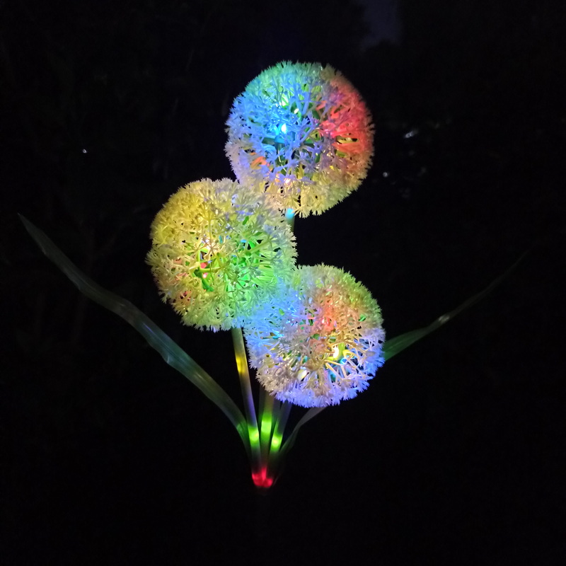 Solar Power 3-Head Dandelion Decorative Light 36pcs 4-Colorful LED Copper Wire String Lights for Garden Outdoor Landscape Roads