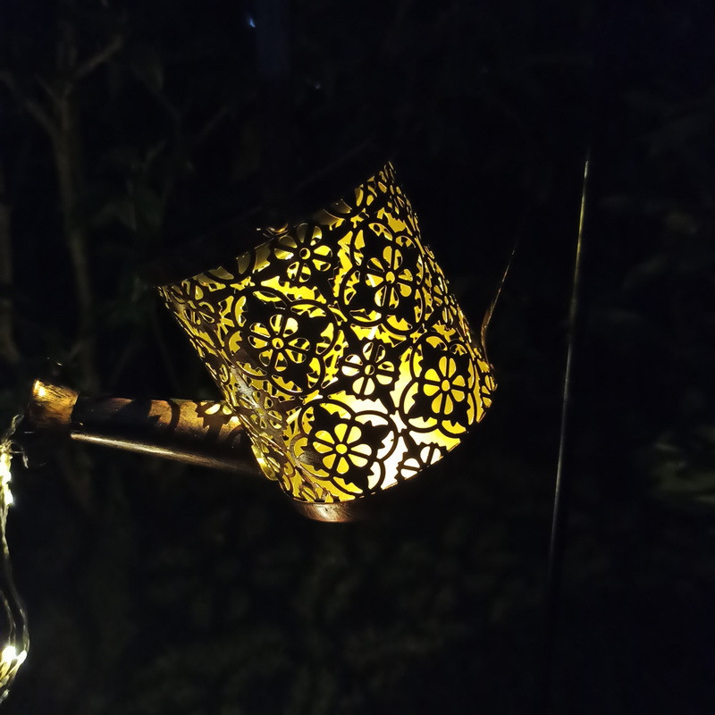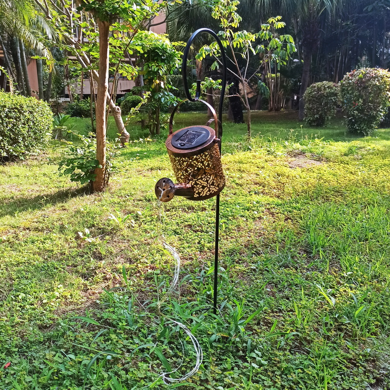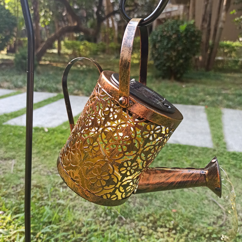 Solar Watering Can Garden Light Iron Material Warm White LED 3500K IP54 Waterproof Rechargeable 600mAh Battery Landscape Road