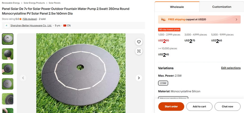 Panel Solar De 7v for Solar Power Outdoor Fountain Water Pump 2.5watt 350ma Round Monocrystalline PV Solar Panel 2.5w 160mm Dia