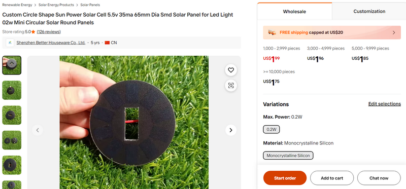 Custom Circle Shape Sun Power Solar Cell 5.5v 35ma 65mm Dia Smd Solar Panel for Led Light 02w Mini Circular Solar Round Panels
