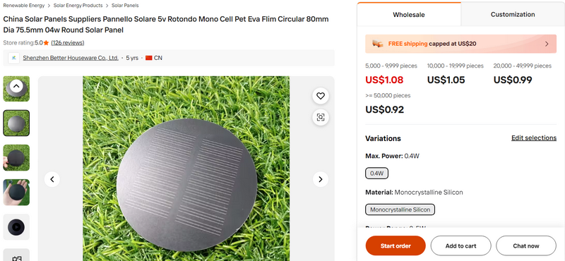 China Solar Panels Suppliers Pannello Solare 5v Rotondo Mono Cell Pet Eva Flim Circular 80mm Dia 75.5mm 04w Round Solar Panel