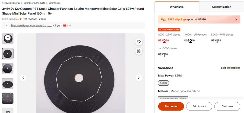 3v 5v 9v 12v Custom PET Small Circular Panneau Solaire Monocrystalline Solar Cells 1.25w Round Shape Mini Solar Panel 160mm 5v