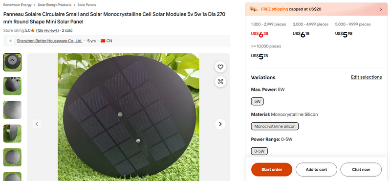 Panneau Solaire Circulaire Small and Solar Monocrystalline Cell Solar Modules 5v 5w 1a Dia 270 mm Round Shape Mini Solar Panel