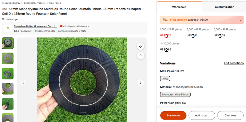 156156mm Monocrystalline Solar Cell Round Solar Fountain Panels 180mm Trapezoid Shaped Cell Dia 185mm Round Fountain Solar Panel