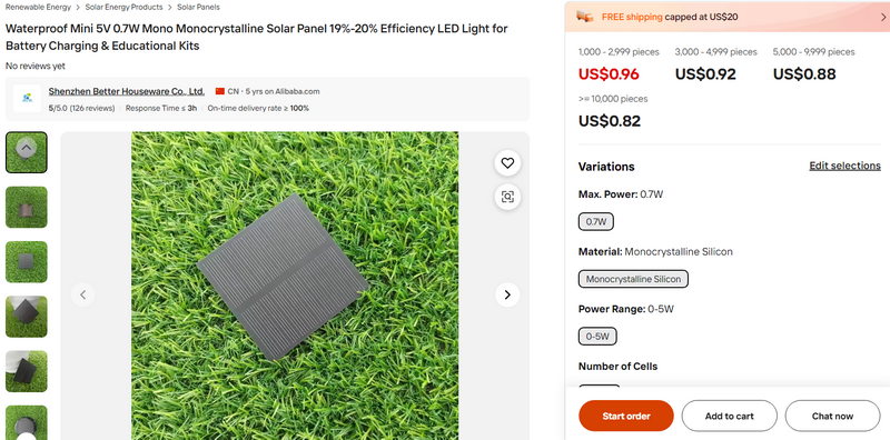 Waterproof Mini 5V 0.7W Mono Monocrystalline Solar Panel 19%-20% Efficiency LED Light for Battery Charging & Educational Kits