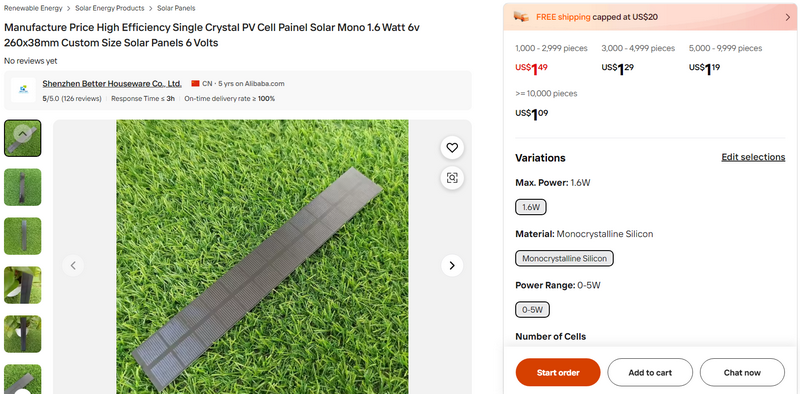 Manufacture Price High Efficiency Single Crystal PV Cell Painel Solar Mono 1.6 Watt 6v 260x38mm Custom Size Solar Panels 6 Volts