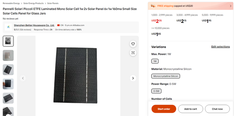 Pannelli Solari Piccoli ETFE Laminated Mono Solar Cell 1w 2v Solar Panel 6v 1w 160ma Small Size Solar Cells Panel for Glass Jars