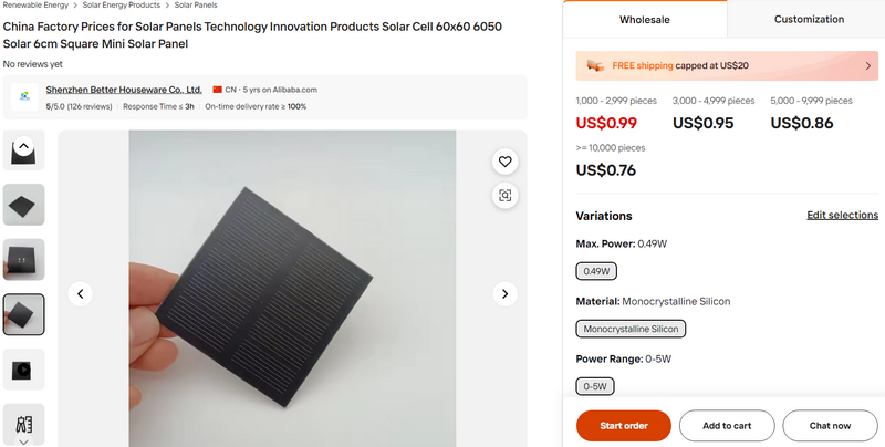 China Factory Prices for Solar Panels Technology Innovation Products Solar Cell 60x60 6050 Solar 6cm Square Mini Solar Panel