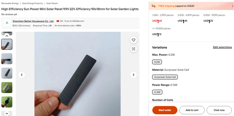 High Efficiency Sun Power Mini Solar Panel 9.9V 22% Efficiency 90x18mm for Solar Garden Lights