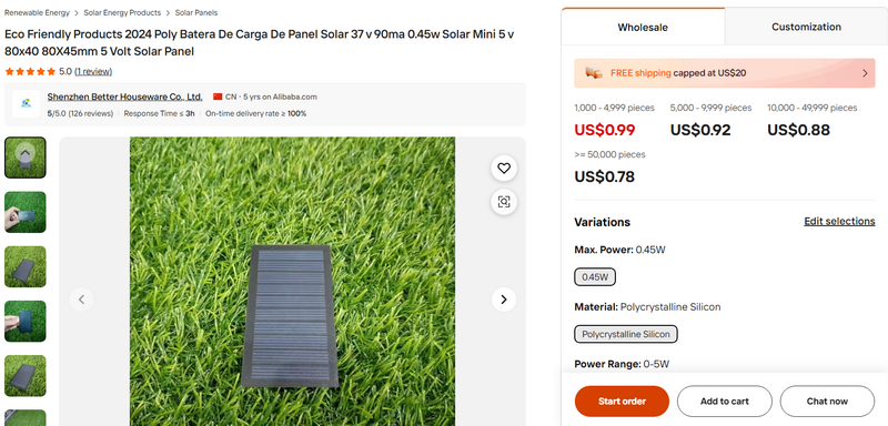 Eco Friendly Products 2024 Poly Batera De Carga De Panel Solar 37 v 90ma 0.45w Solar Mini 5 v 80x40 80X45mm 5 Volt Solar Panel