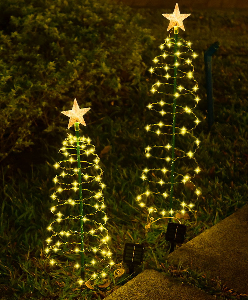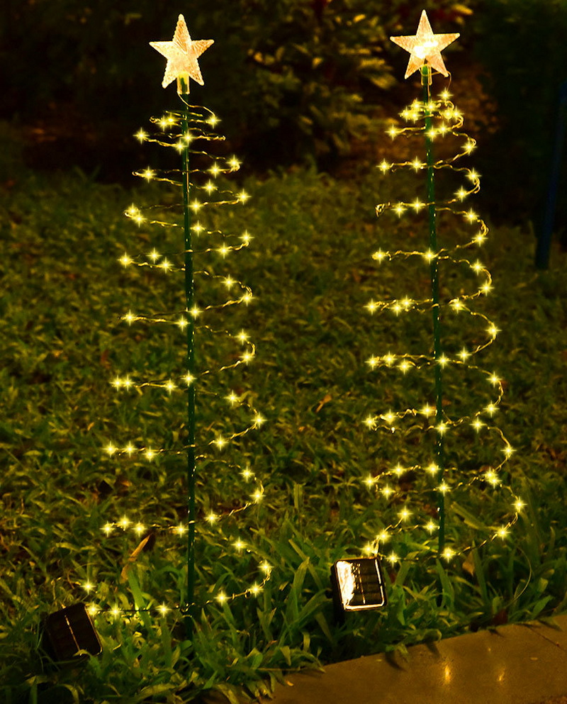 Factory Solar Energy Garden Lights Iron Christmas Tree Star Light Led Outdoor Courtyard Garden Festival Decoration Lawn Lights
