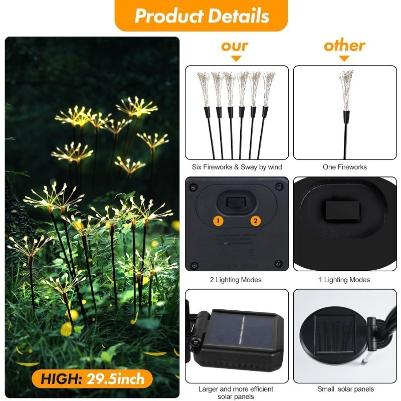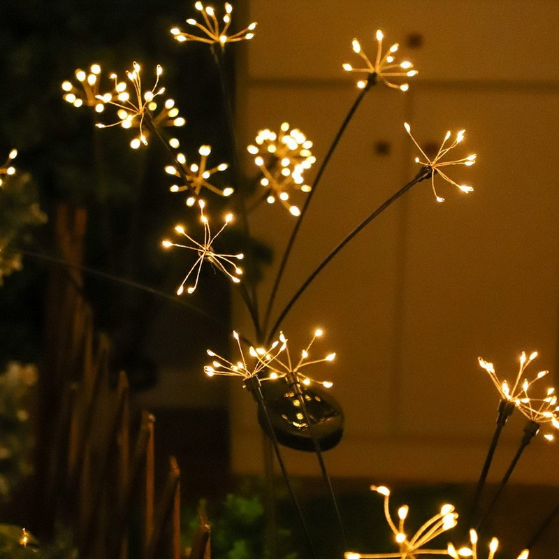2024 New Design Outside Yard Pathway Women Mothers Day Gifts 2 Modes 60 Warm White Led Twinkling Solar Garden Firework Lights