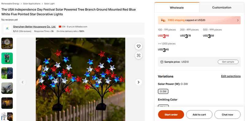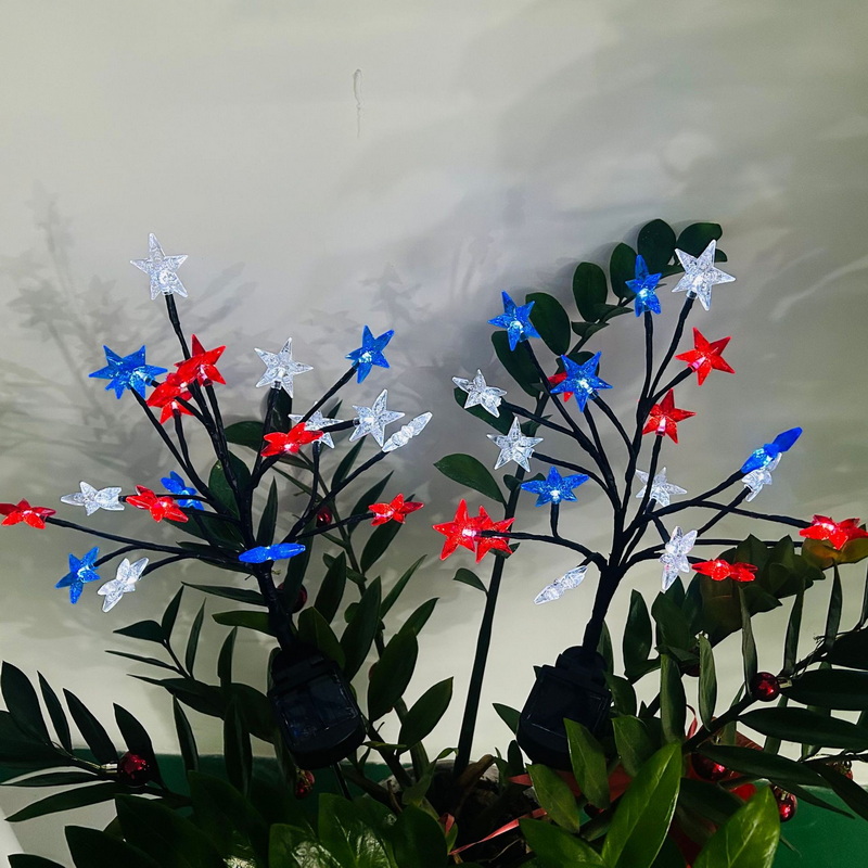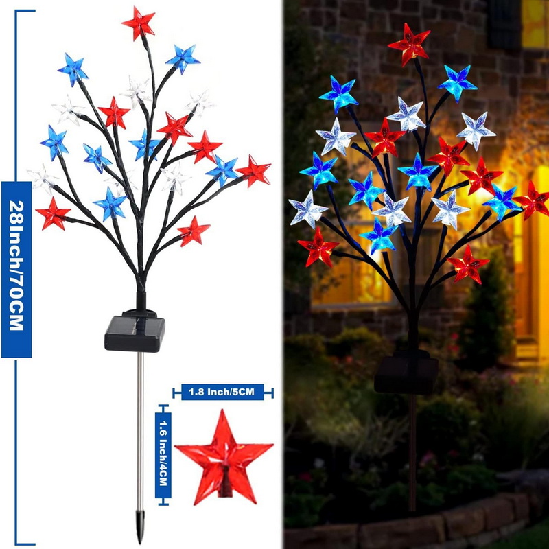 The USA Independence Day Festival Solar Powered Tree Branch Ground Mounted Red Blue White Five Pointed Star Decorative Lights