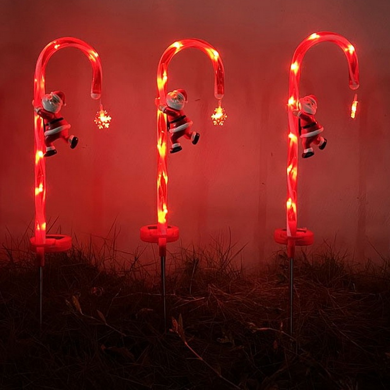 New Hot Christmas Decorative Lamp Pathway Solar Stake Light Red Led Garden Lighting Solar Energy Powered Xmas Walking Stick Lamp