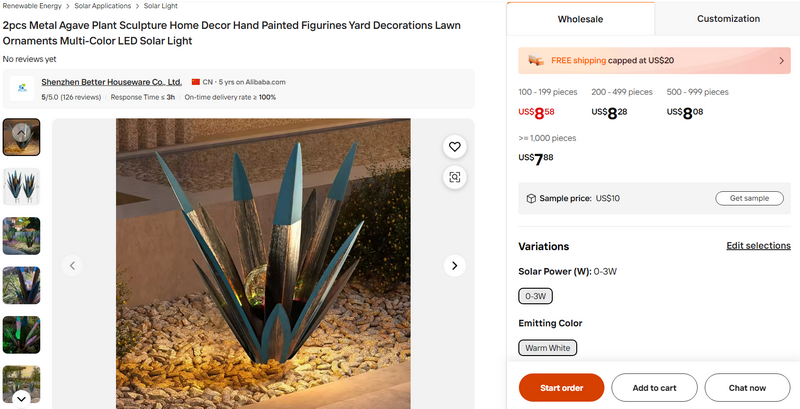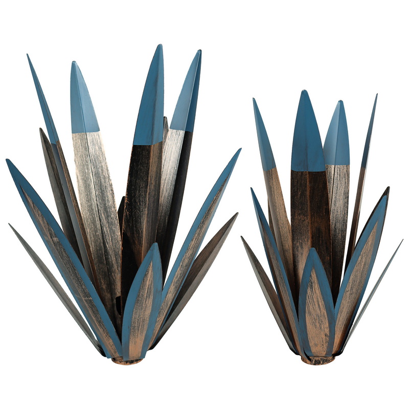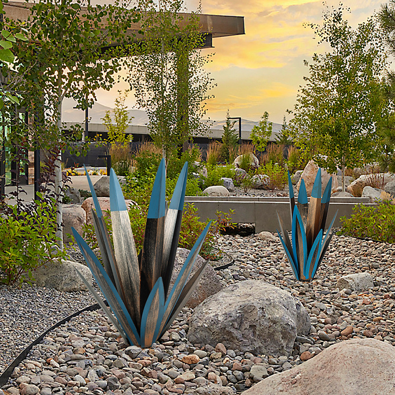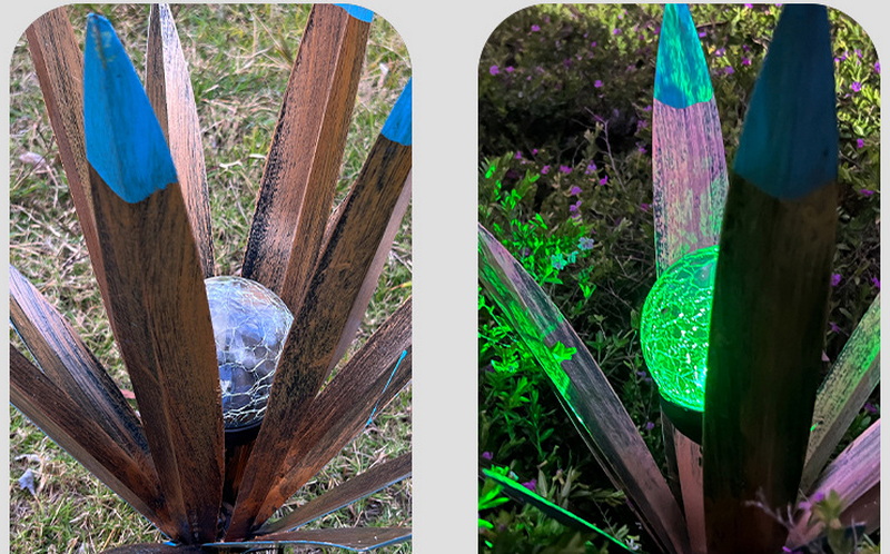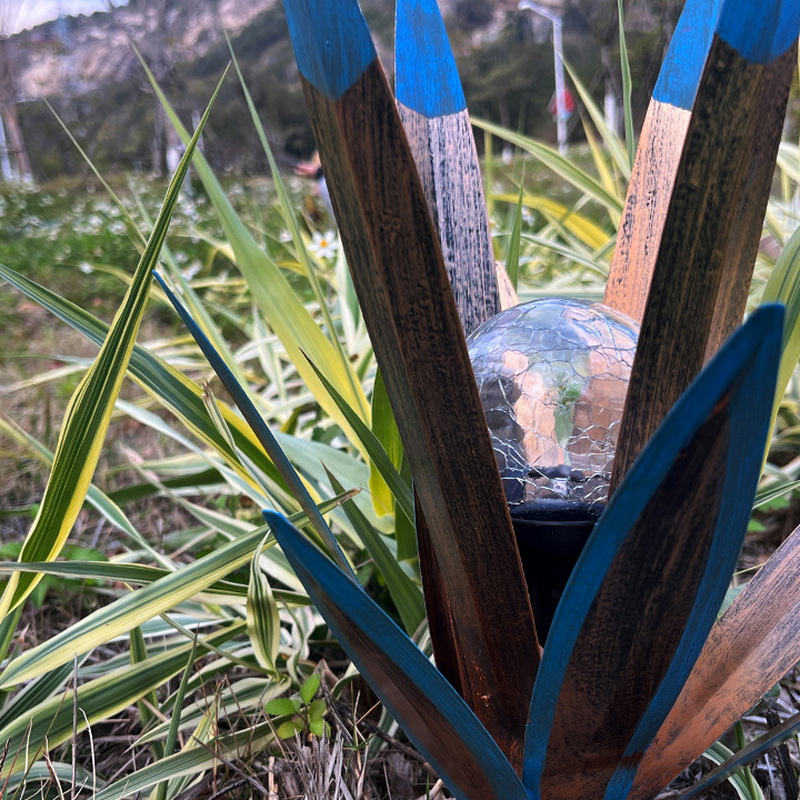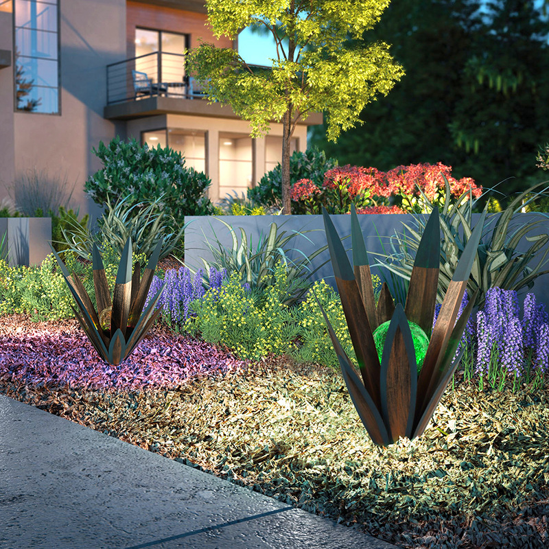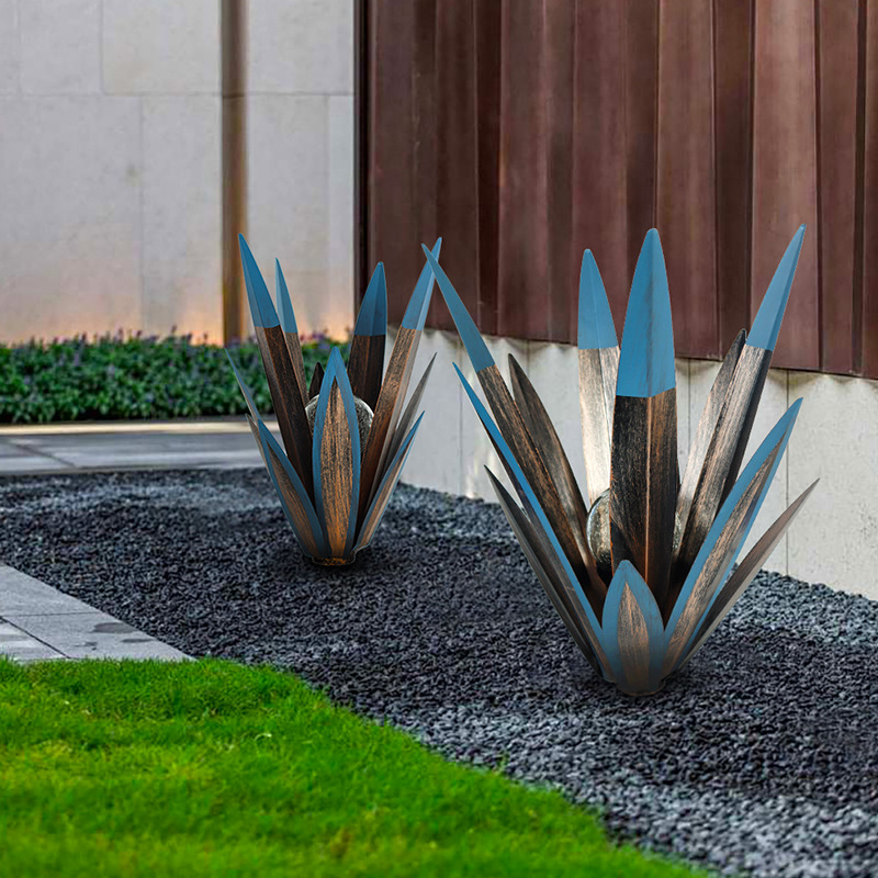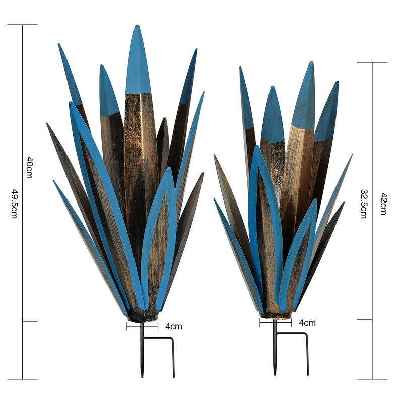 2pcs Metal Agave Plant Sculpture Home Decor Hand Painted Figurines Yard Decorations Lawn Ornaments Multi-Color LED Solar Light