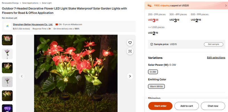 Outdoor 7-Headed Decorative Flower LED Light Stake Waterproof Solar Garden Lights with Flowers for Road & Office Application