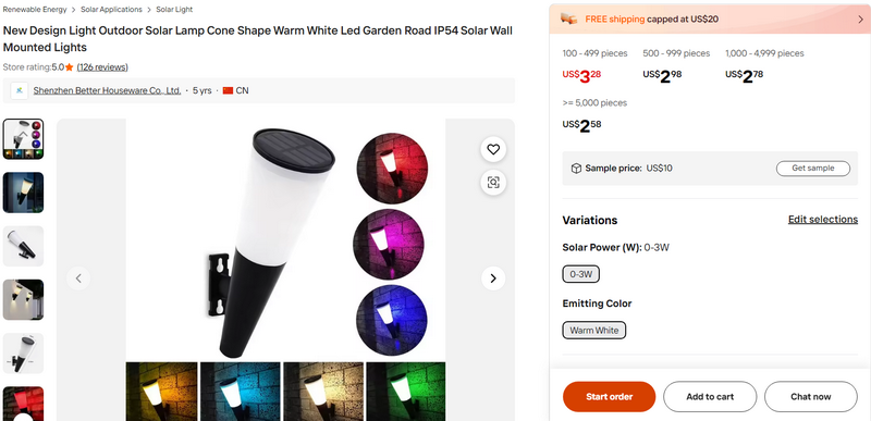 New Design Light Outdoor Solar Lamp Cone Shape Warm White Led Garden Road IP54 Solar Wall Mounted Lights