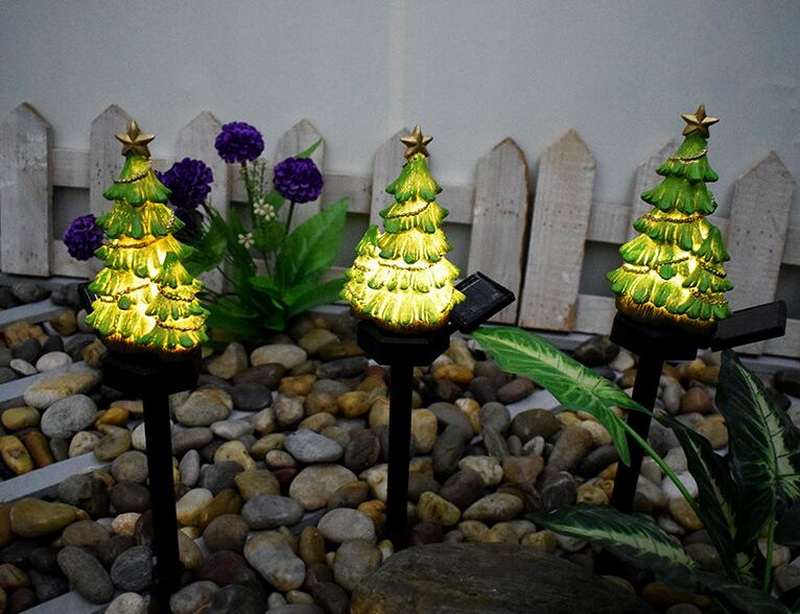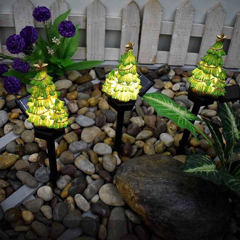 Garden Decorative Water Proof Led Mini Christmas Holiday Tree Stand Light Rechargeable Solar Lights Warm White Xmas Tree Lights